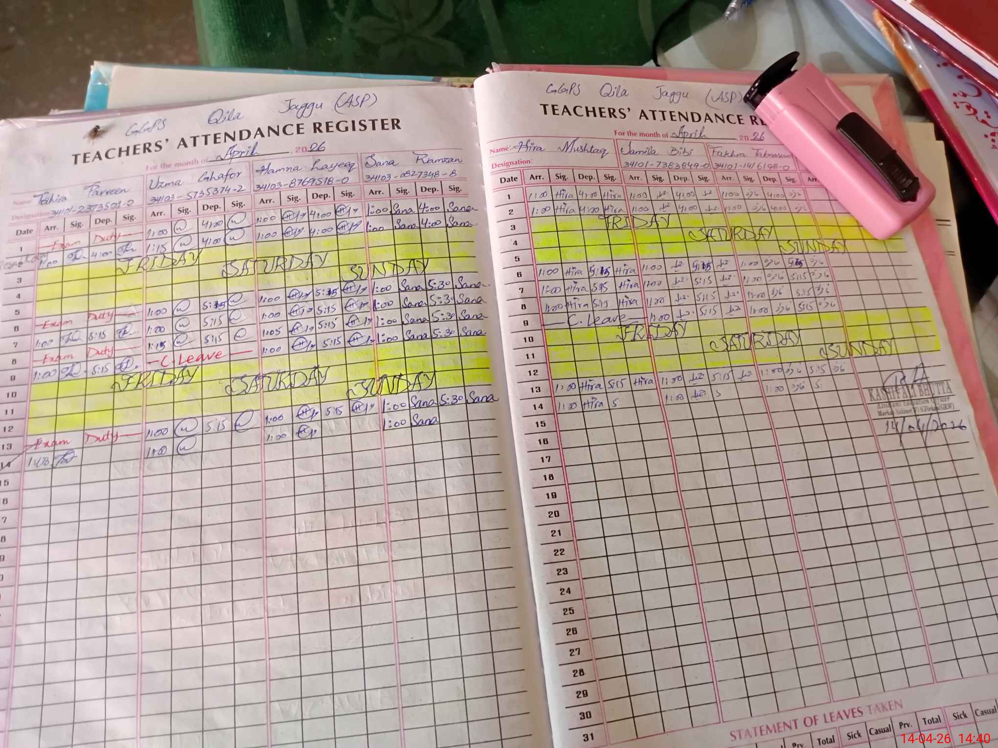 | Leave | Duty | Absent | Maternity | Medical | Ex- Pak |