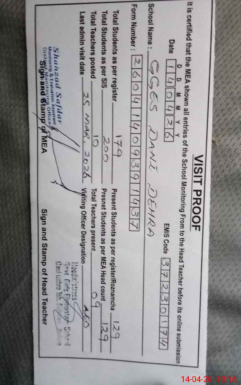 | EMIS Code: 37230174 | Name of School: GGES DANI DEHRA | |||