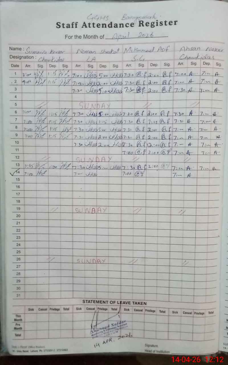 | 35**** | Sa**** La**** | SSE Urdu | Contract | 0 | 0 | 0 | 0 | 0 | 0 | 0 | 0 | 0 | Exam Duty |
