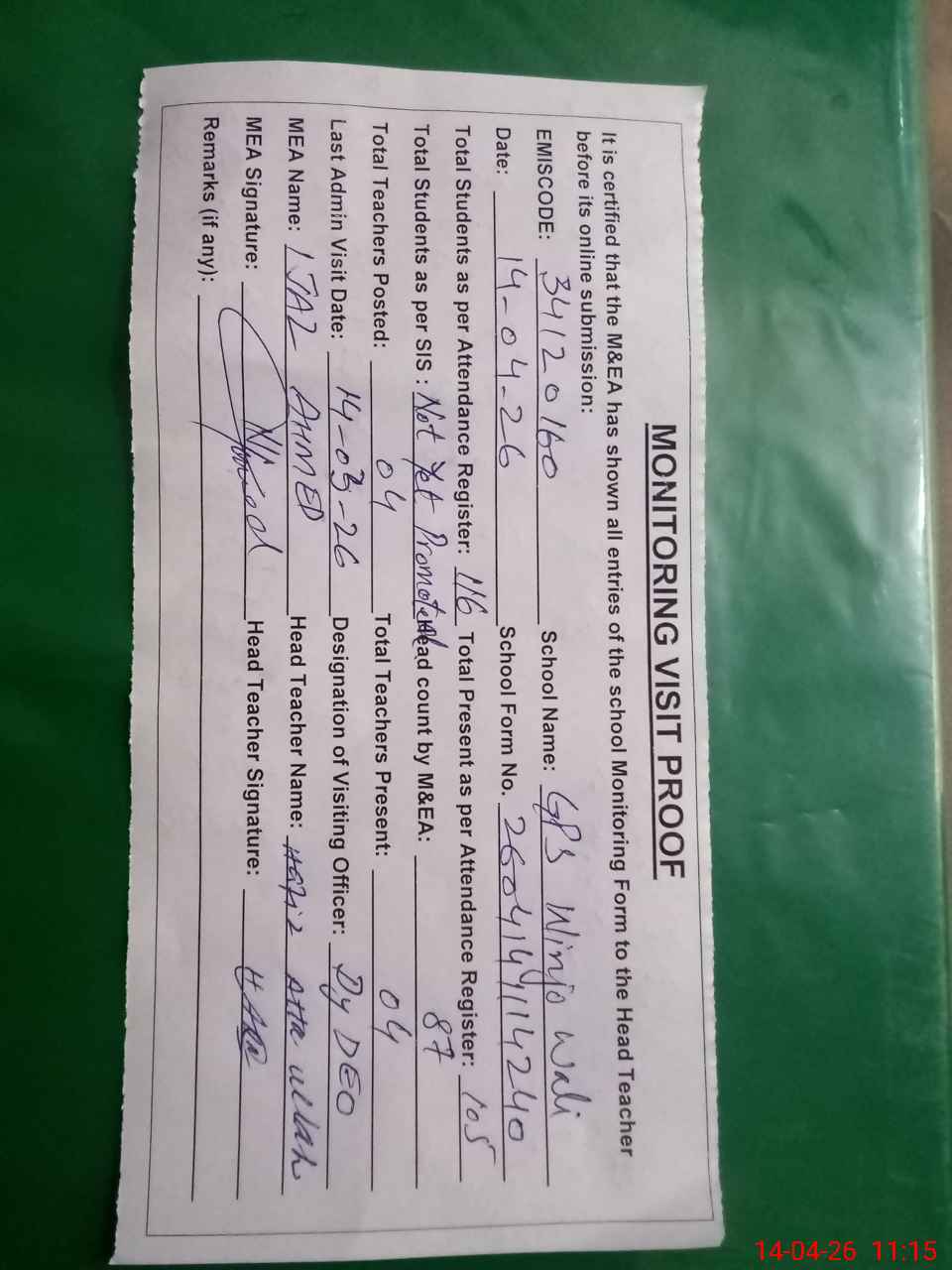 | EMIS Code: 34120160 | Name of School: GPS WANJO WALI | |||