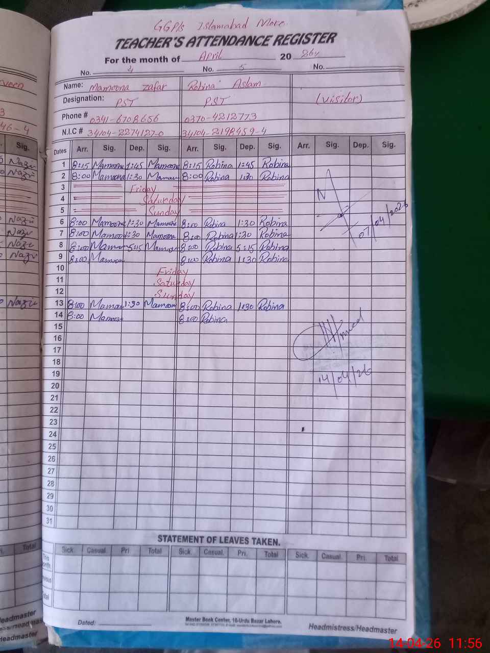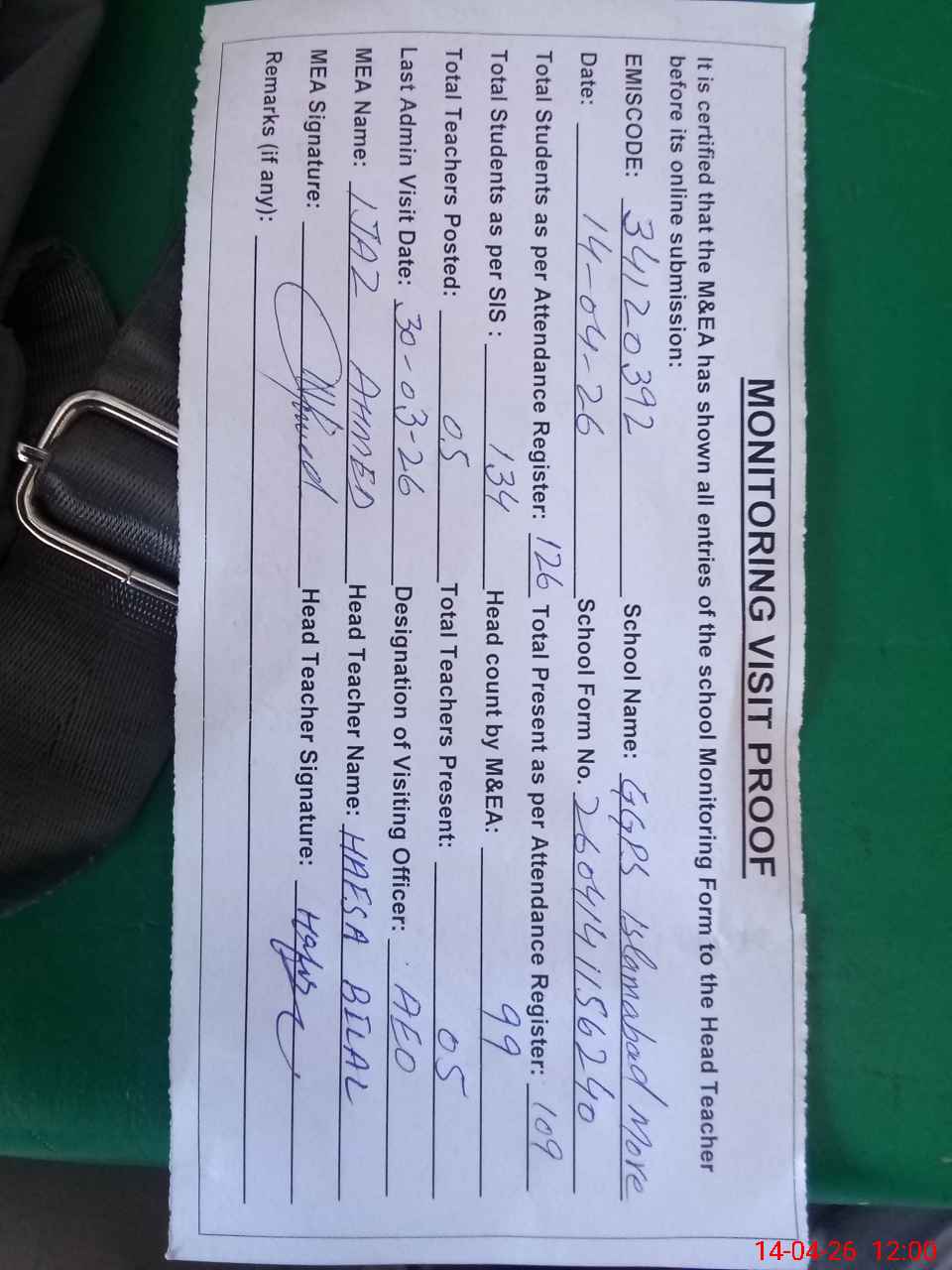 | EMIS Code: 34120392 | Name of School: GGPS ISLAMABAD MORE | |||