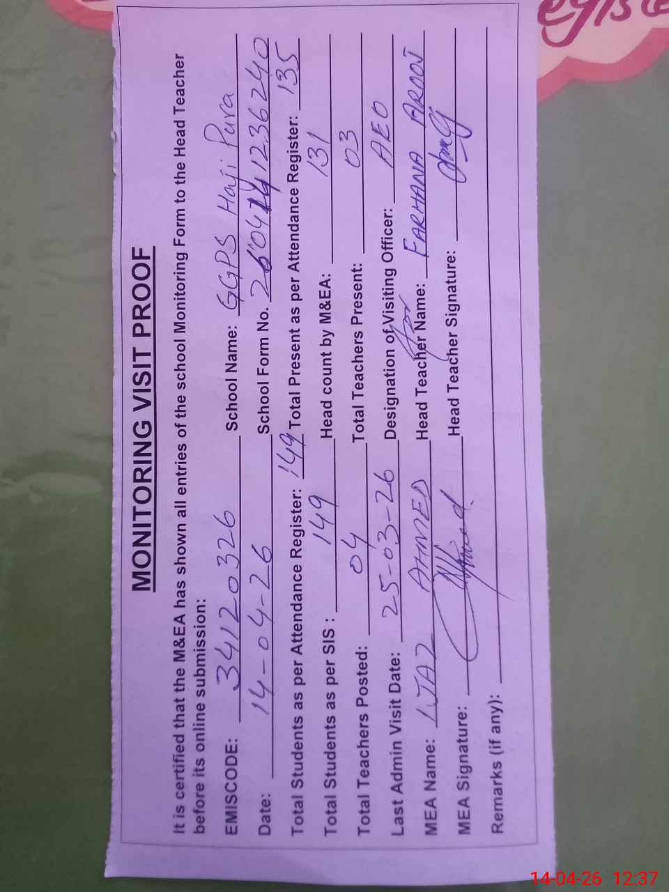 | EMIS Code: 34120326 | Name of School: GGPS HAJI PURA | |||