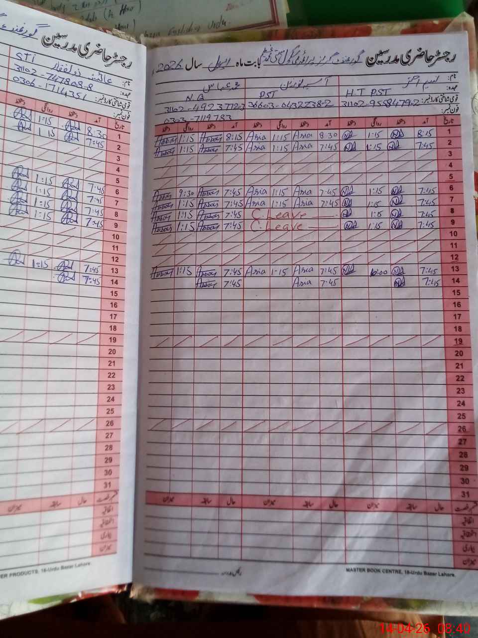 | Name: NA**** AK**** Designation: (School Headmaster's/Headmistress's) PST HT Phone/Cell Number: 03**** |