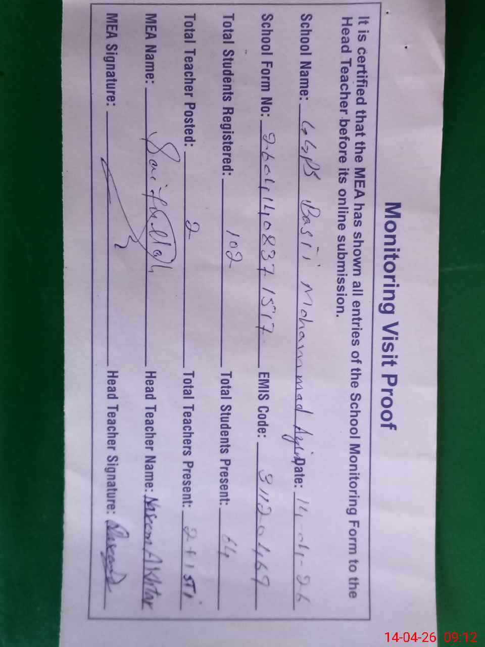 | EMIS Code: 31120469 | Name of School: GGPS BASTI MUHAMMAD AZIM | |||