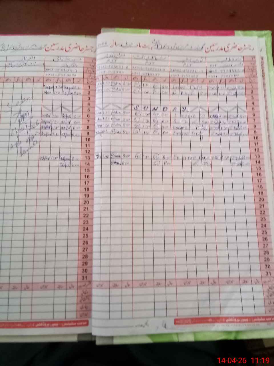 | CNIC | Full Name | Designation | R/C | Absence During Last Calender Month |