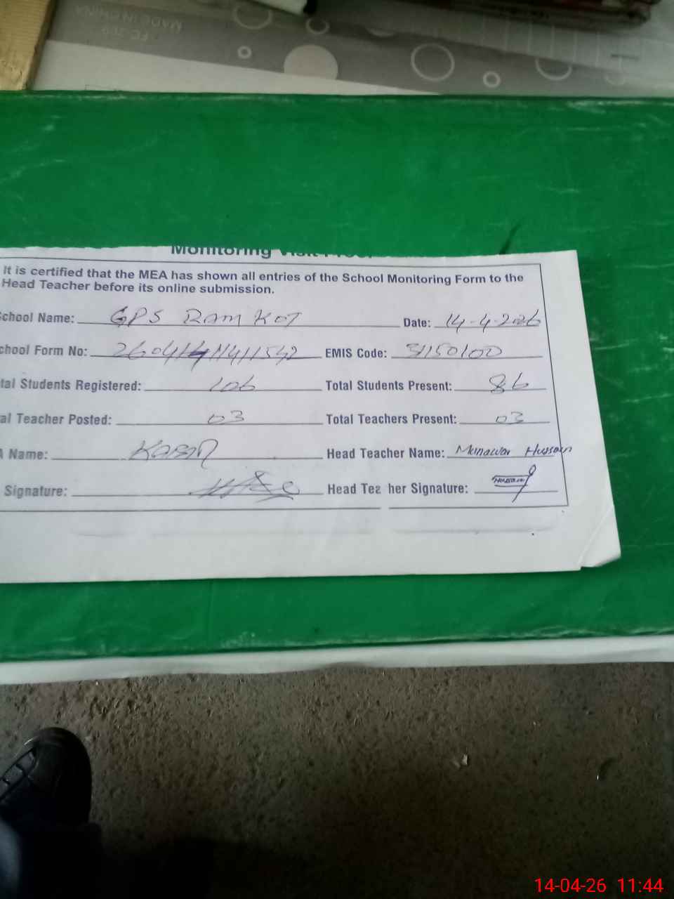 | EMIS Code: 31150100 | Name of School: GPS RAMKOT | |||