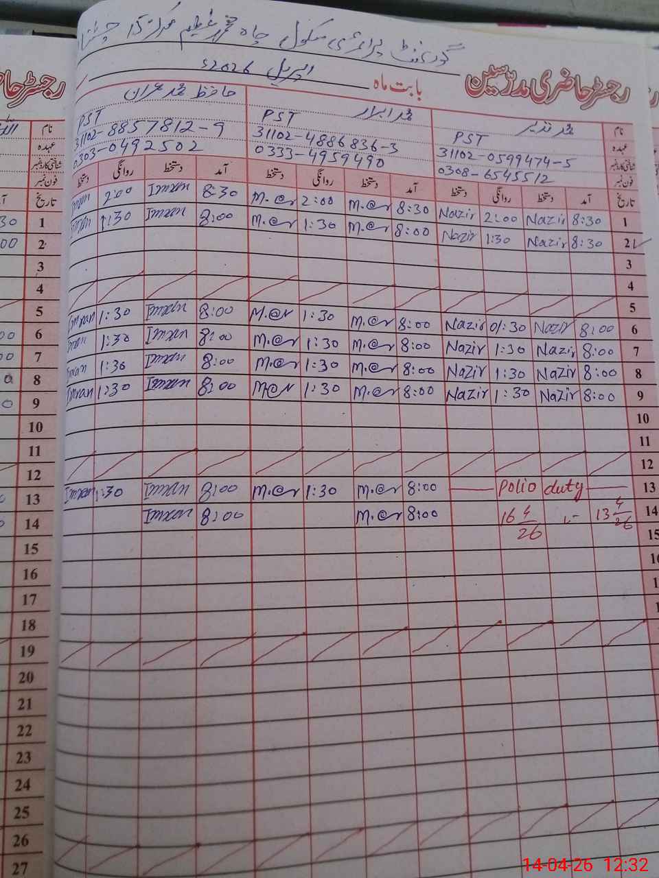 | Name: MU**** NA**** Designation: (School Headmaster's/Headmistress's) PST Phone/Cell Number: 03**** |