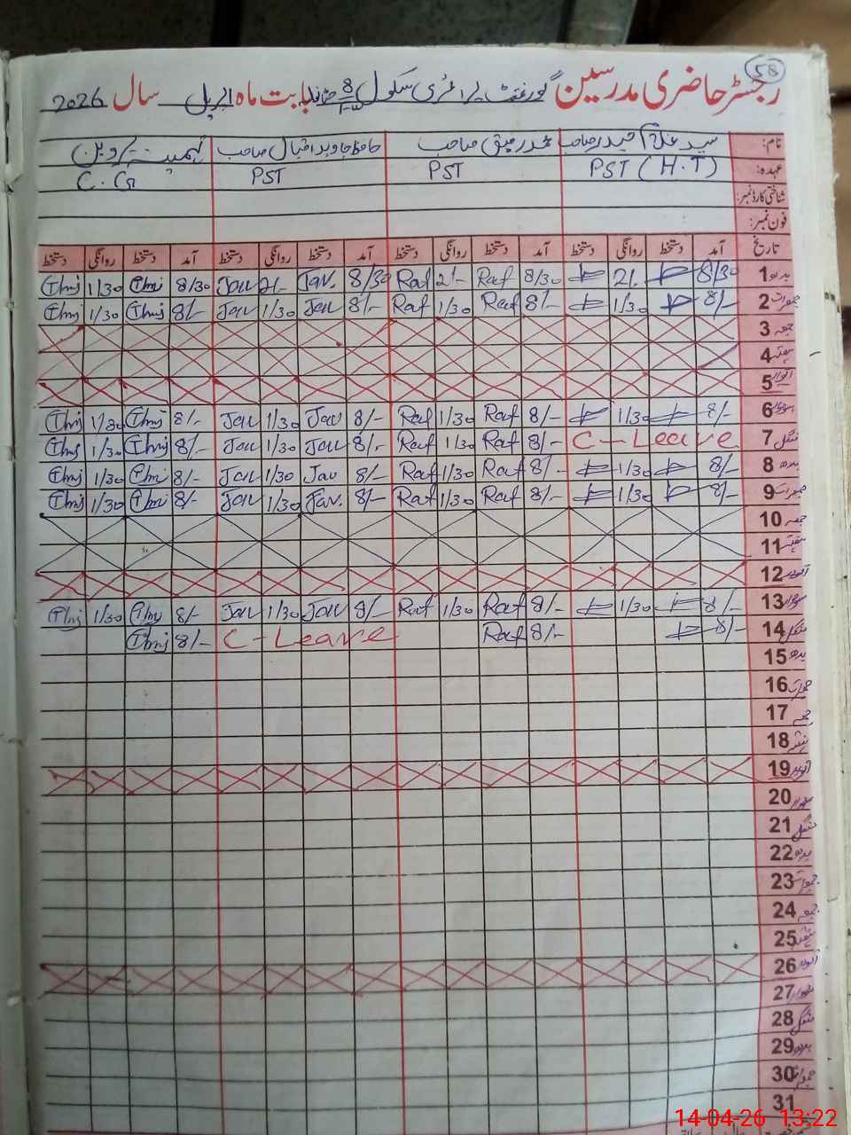| CNIC | Full Name | Designation | R/C | Absence During Last Calender Month |