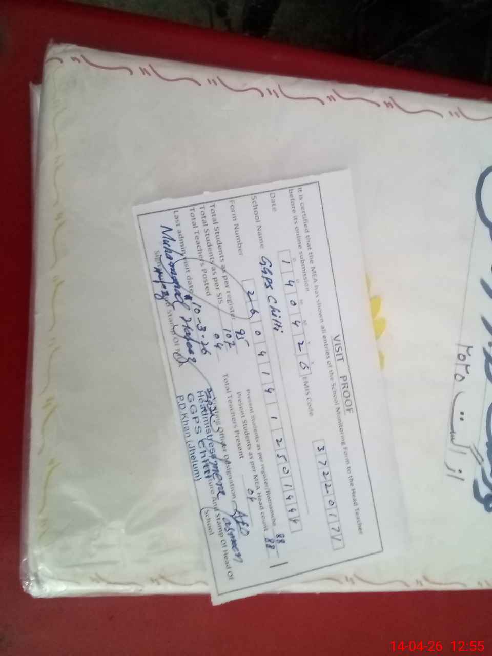 | Certified that this School was Inspected by the Undersigned MEA/DMO Today and the Information Stated Above is as Per Record. | |||||