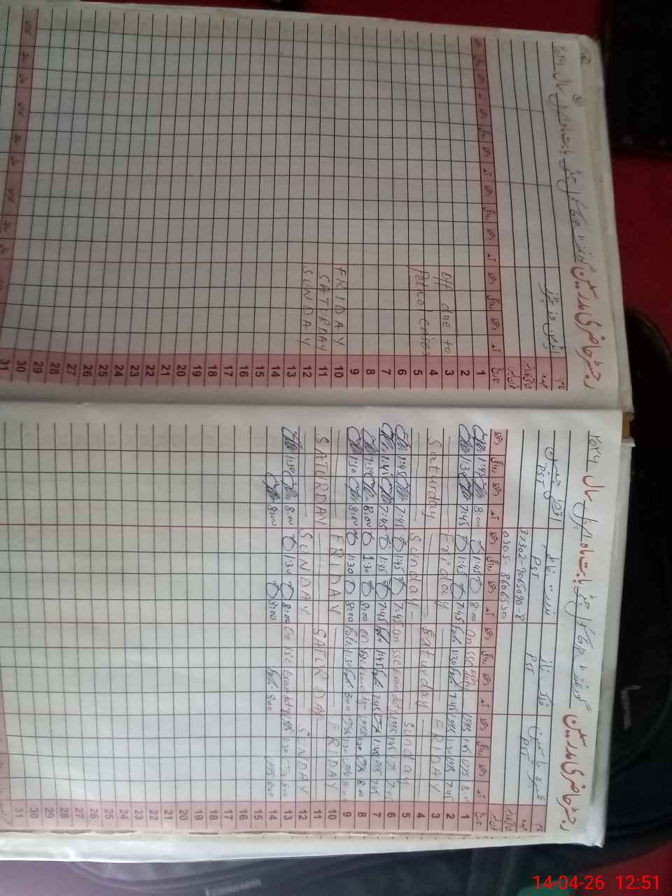 | CNIC | Full Name | Designation | R/C | Absence During Last Calender Month |