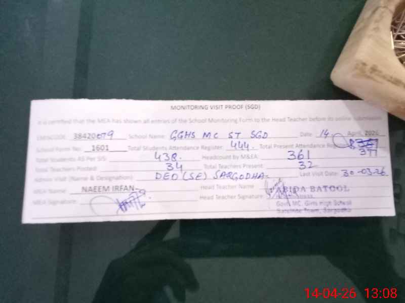 | EMIS Code: 38420079 | Name of School: GGHS MC SATTELITE TOWN SARGODHA | |||