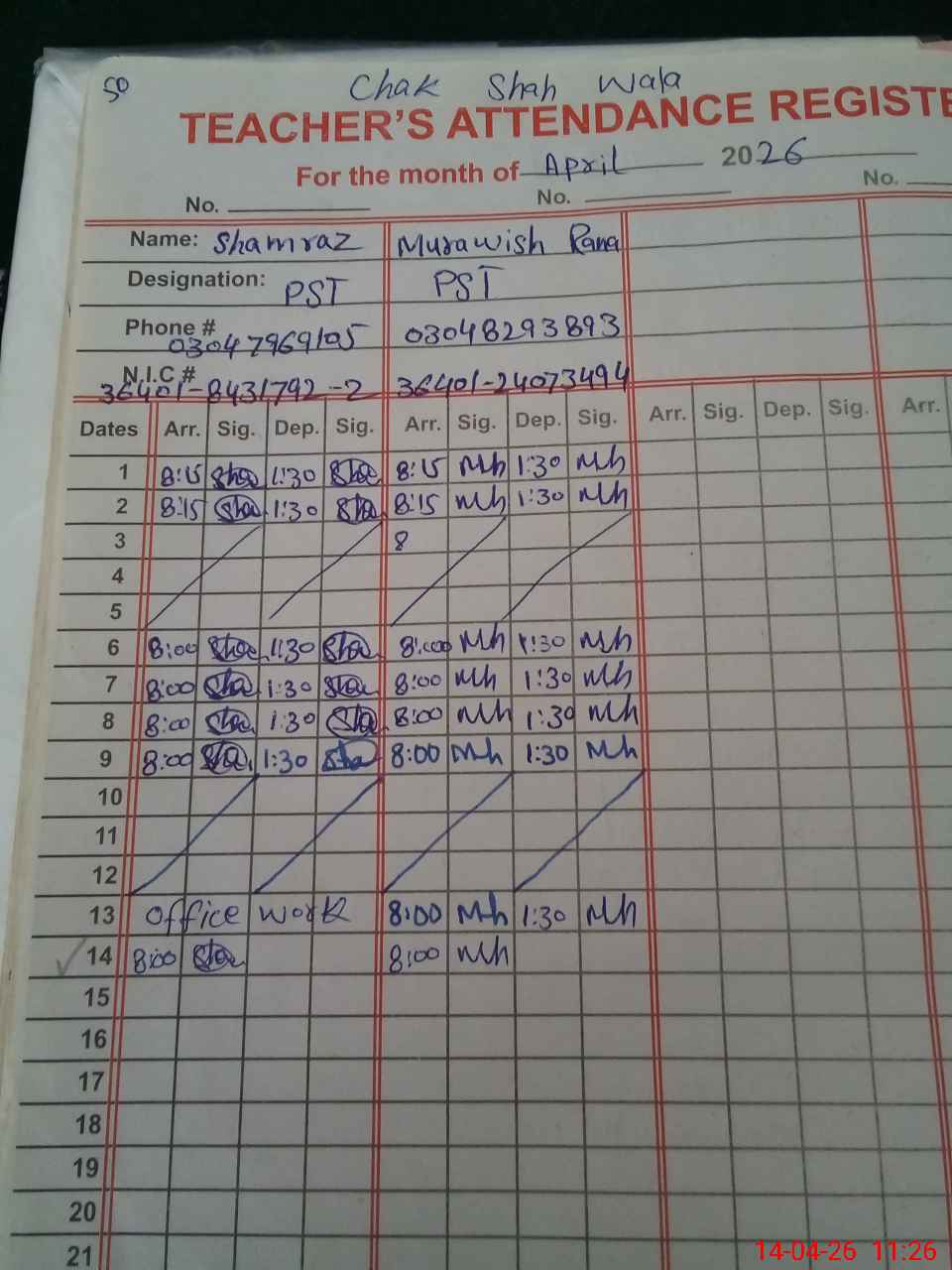 | EMIS Code: 31110398 | Name of School: GMPS CHAK SHAH WALA | |||