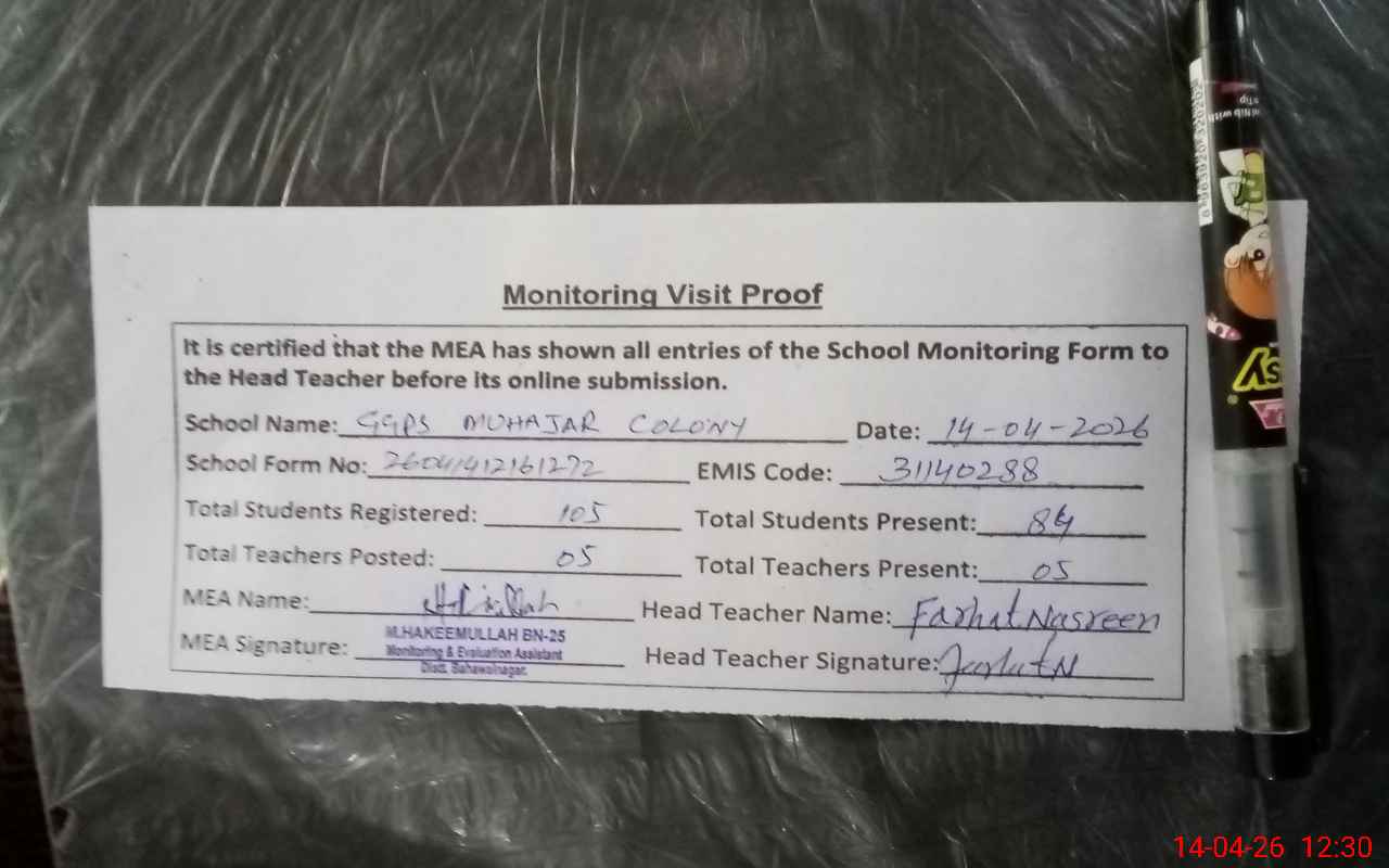 | EMIS Code: 31140288 | Name of School: GGPS MUHAJAR COLONY | |||