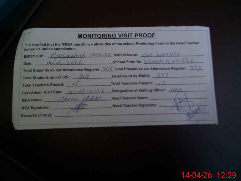 | EMIS Code: 34130138 | Name of School: GHS WAHNDO | |||