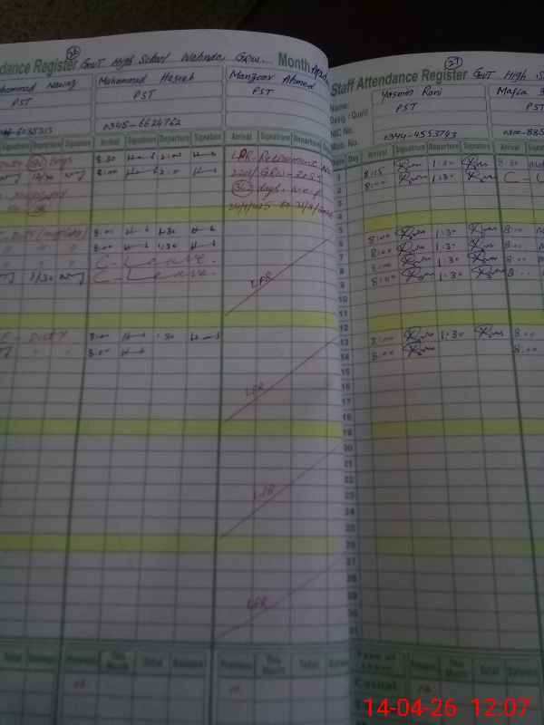 | 34**** | Za**** Al**** | PST Arts | Regular | 0 | 4 | 0 | 0 | 0 | 0 | 0 | 0 | 0 | Exam Duty |