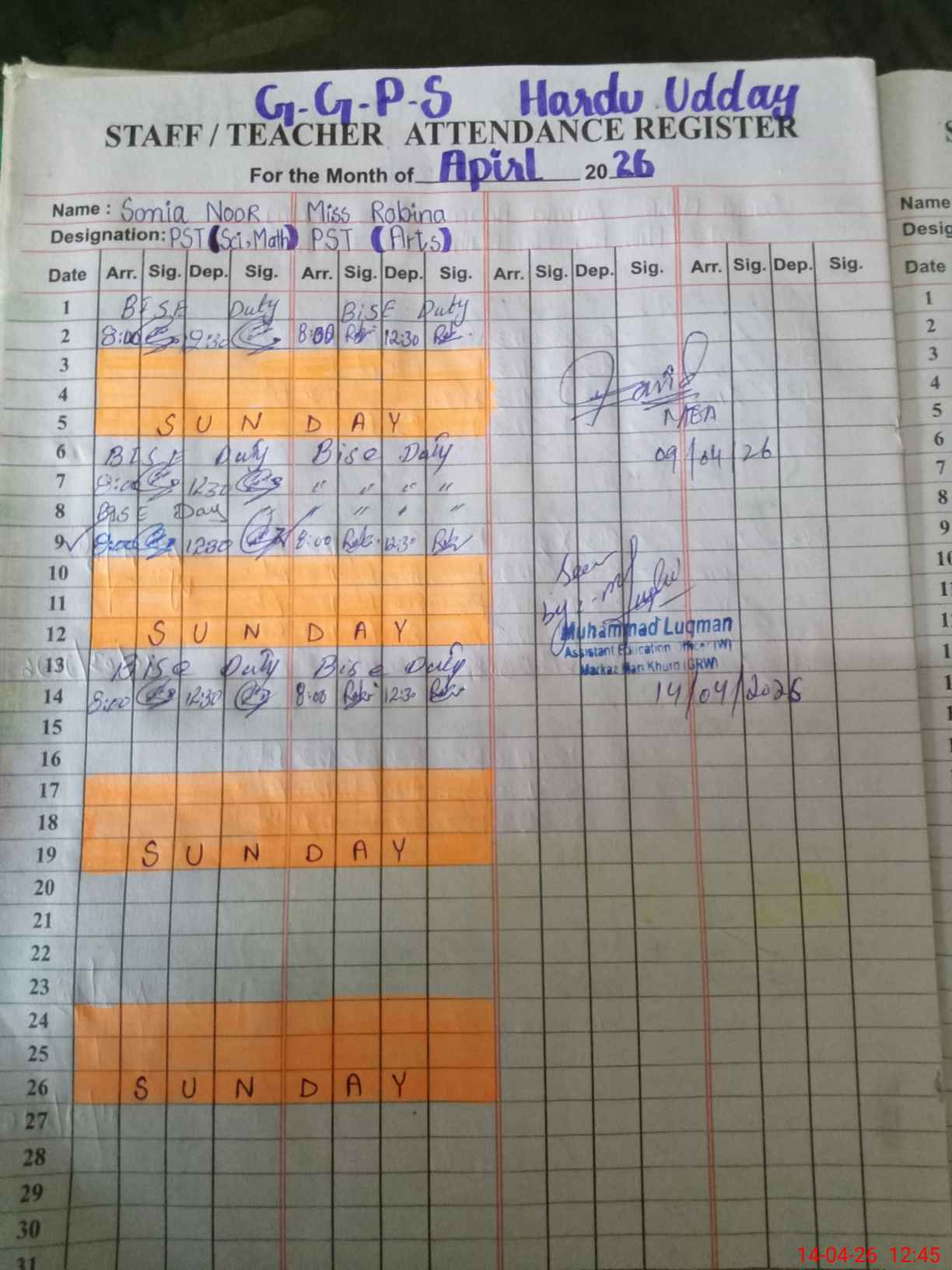 | Monitoring Date: 14-04-2026 | Start Time: 14-04-2026 12:09 PM | End Time: 14-04-2026 08:32 PM | Name of MEA: Mu**** Lu**** | |