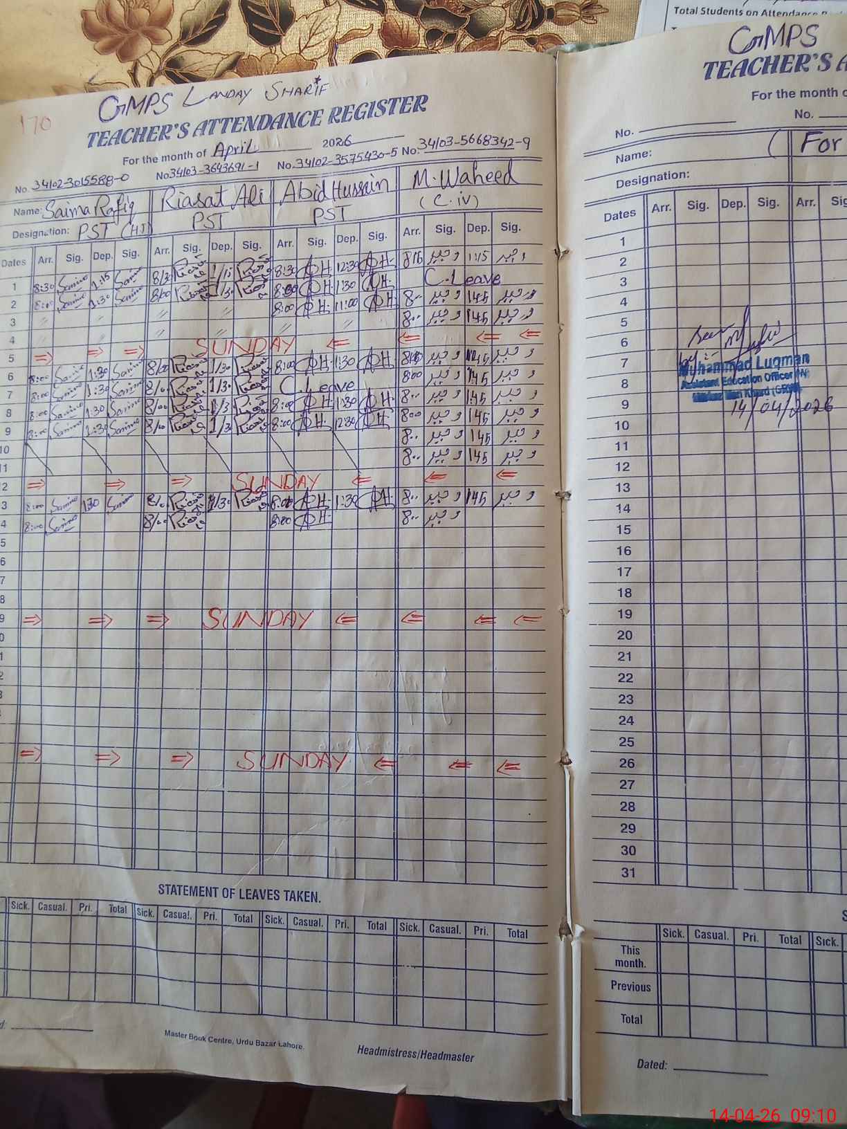 | Name: SA**** RA**** Designation: (School Headmaster's/Headmistress's) PST Phone/Cell Number: 03**** |