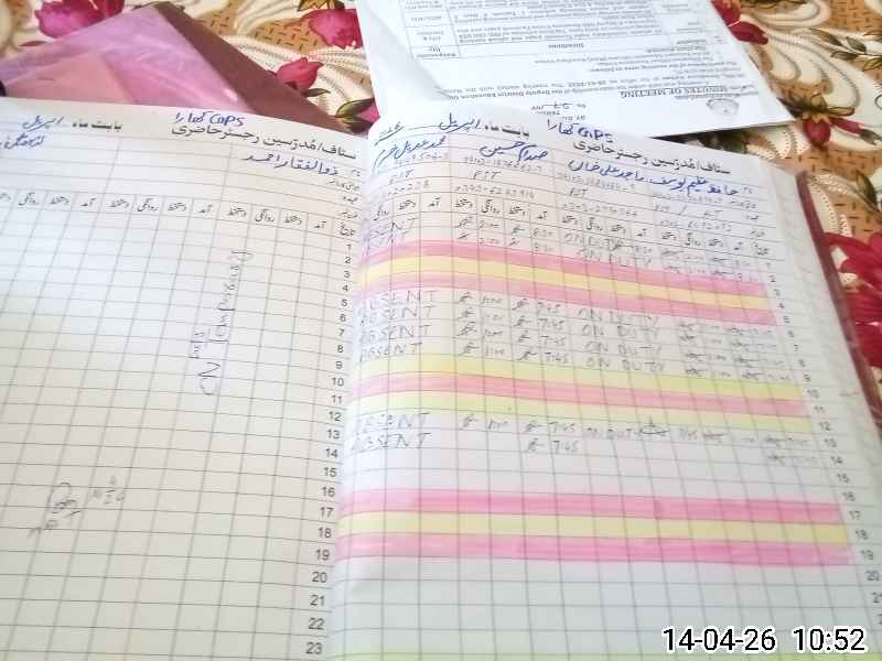 | CNIC | Full Name | Designation | R/C | Absence During Last Calender Month |