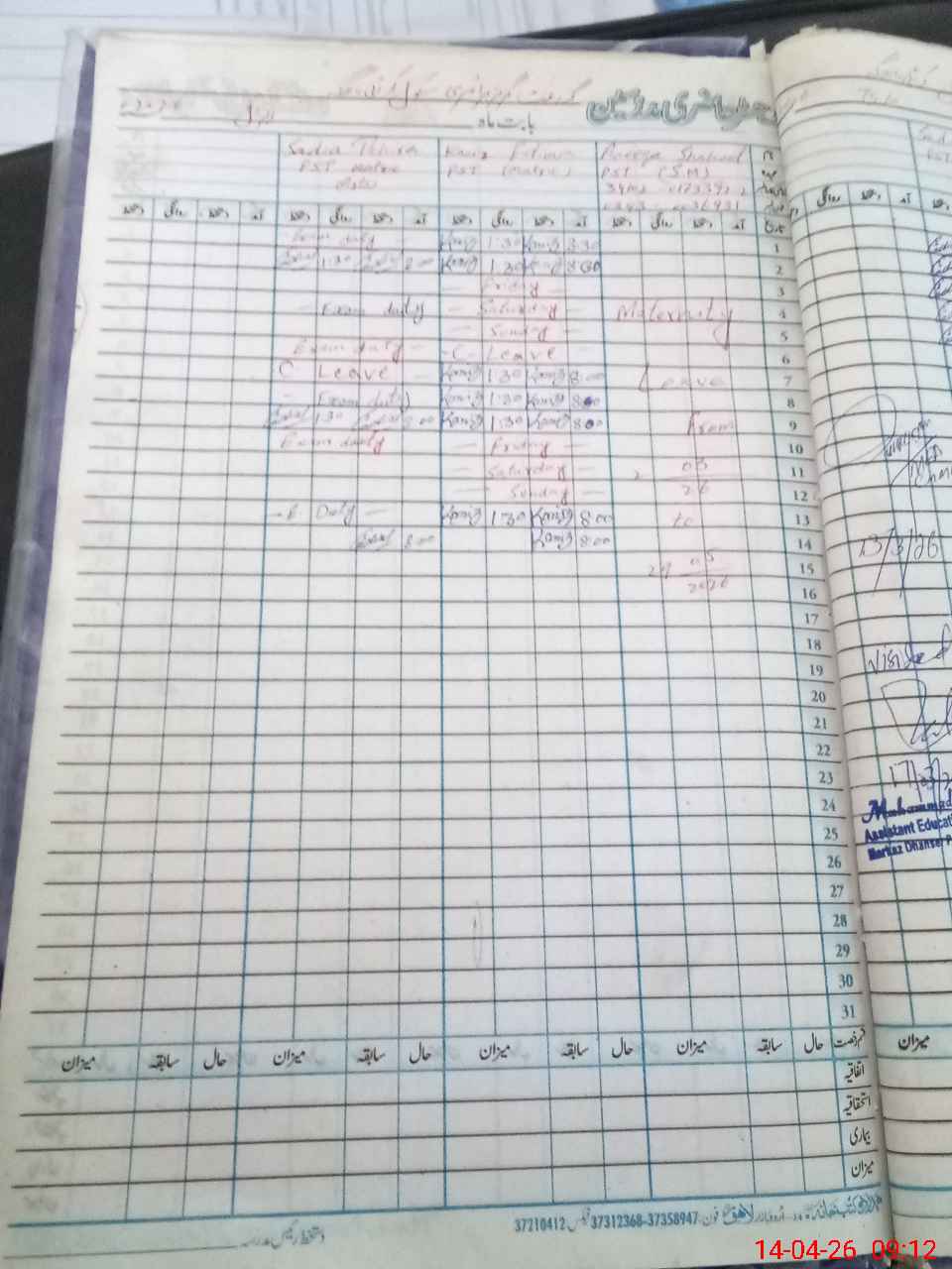 | Leave | Duty | Absent | Maternity | Medical | Ex- Pak |