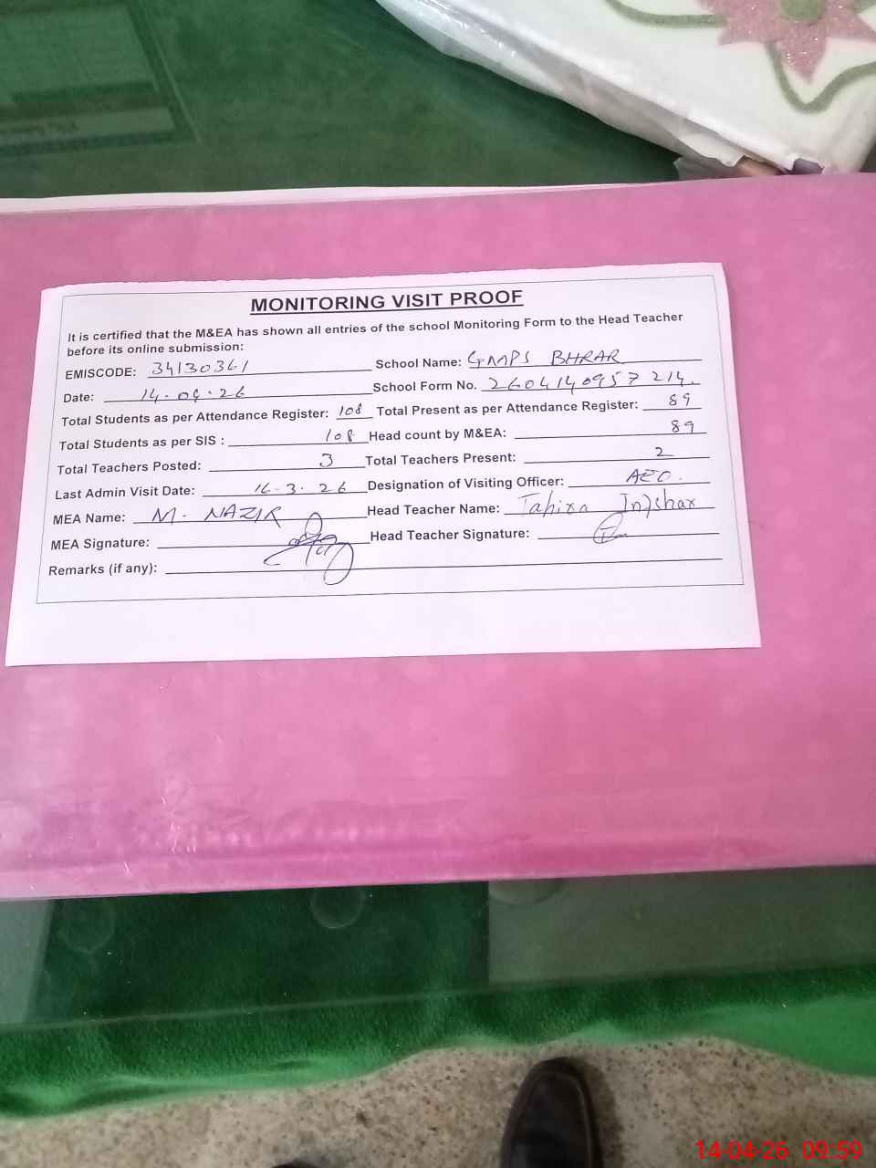 | EMIS Code: 34130361 | Name of School: GMPS BHARAR | |||