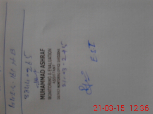 | School Visited by School Health & Nutrition Supervisor (No. of Visits) | 1 | Name1: | KHAWAR HAYAT | Name2: | |