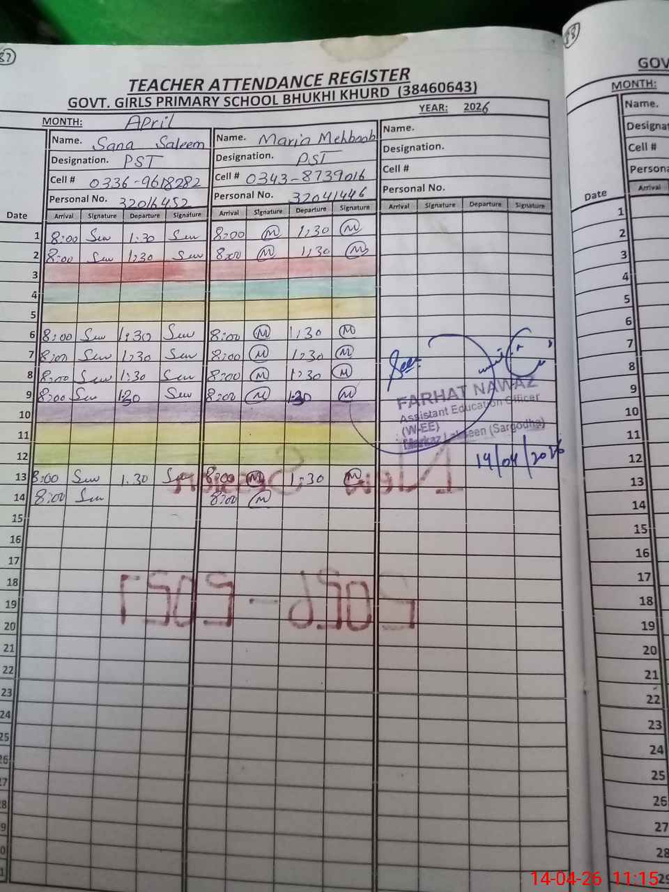 | Name: SA**** SA**** Designation: (School Headmaster's/Headmistress's) PST Phone/Cell Number: 03**** |