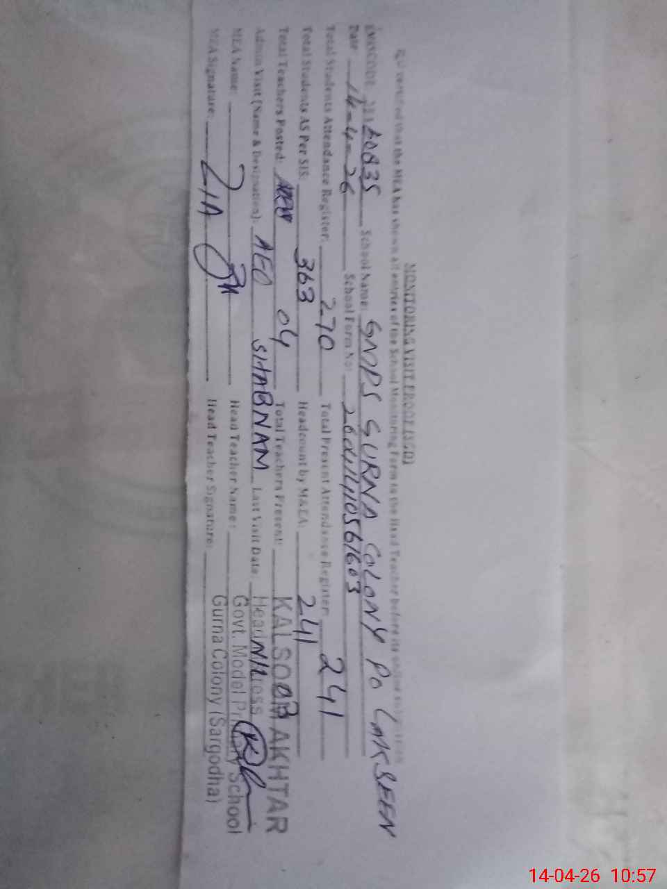| EMIS Code: 38460835 | Name of School: GMPS GURNA COLONY PO LAKSIAN | |||