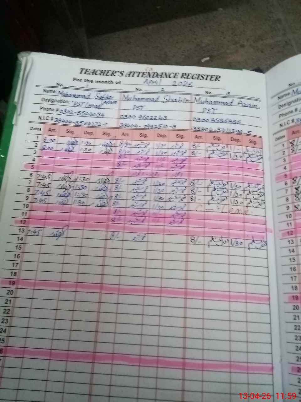 | Name: MU**** SA**** AS**** Designation: (School Headmaster's/Headmistress's) PST Phone/Cell Number: 03**** |