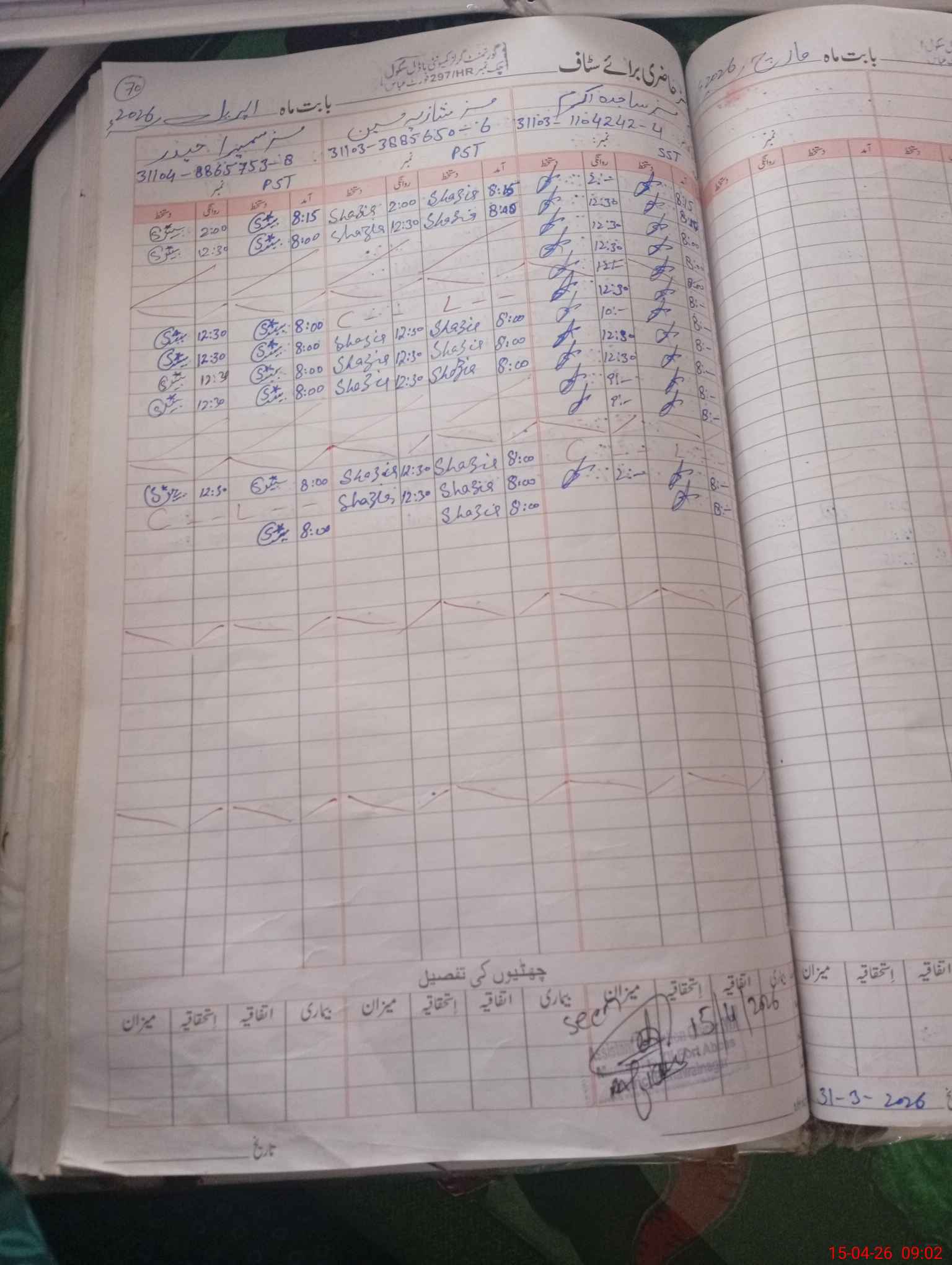 | CNIC | Full Name | Designation | R/C | Absence During Last Calender Month |