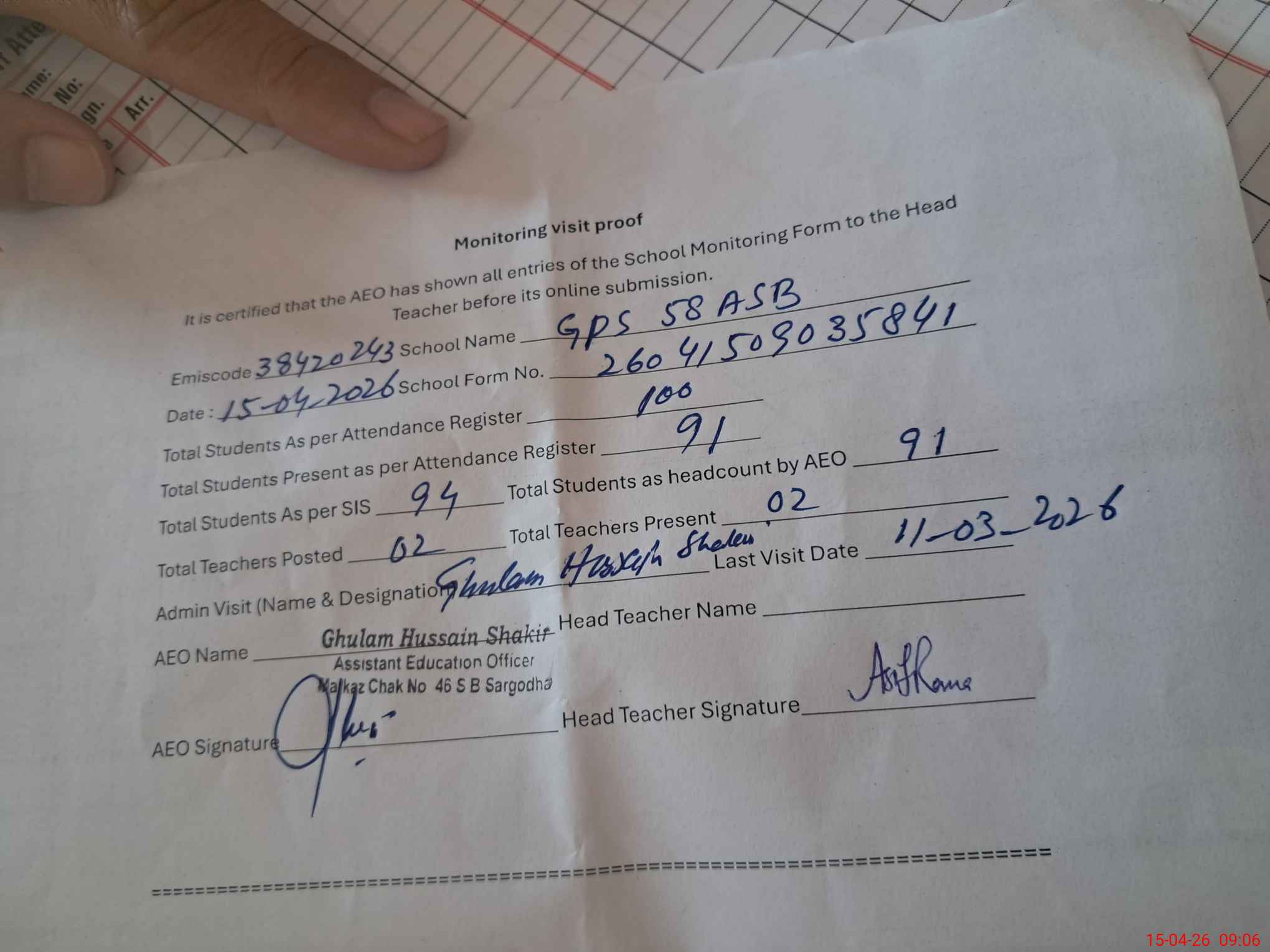 | EMIS Code: 38420243 | Name of School: GPS CHAK NO 58 A SB | |||