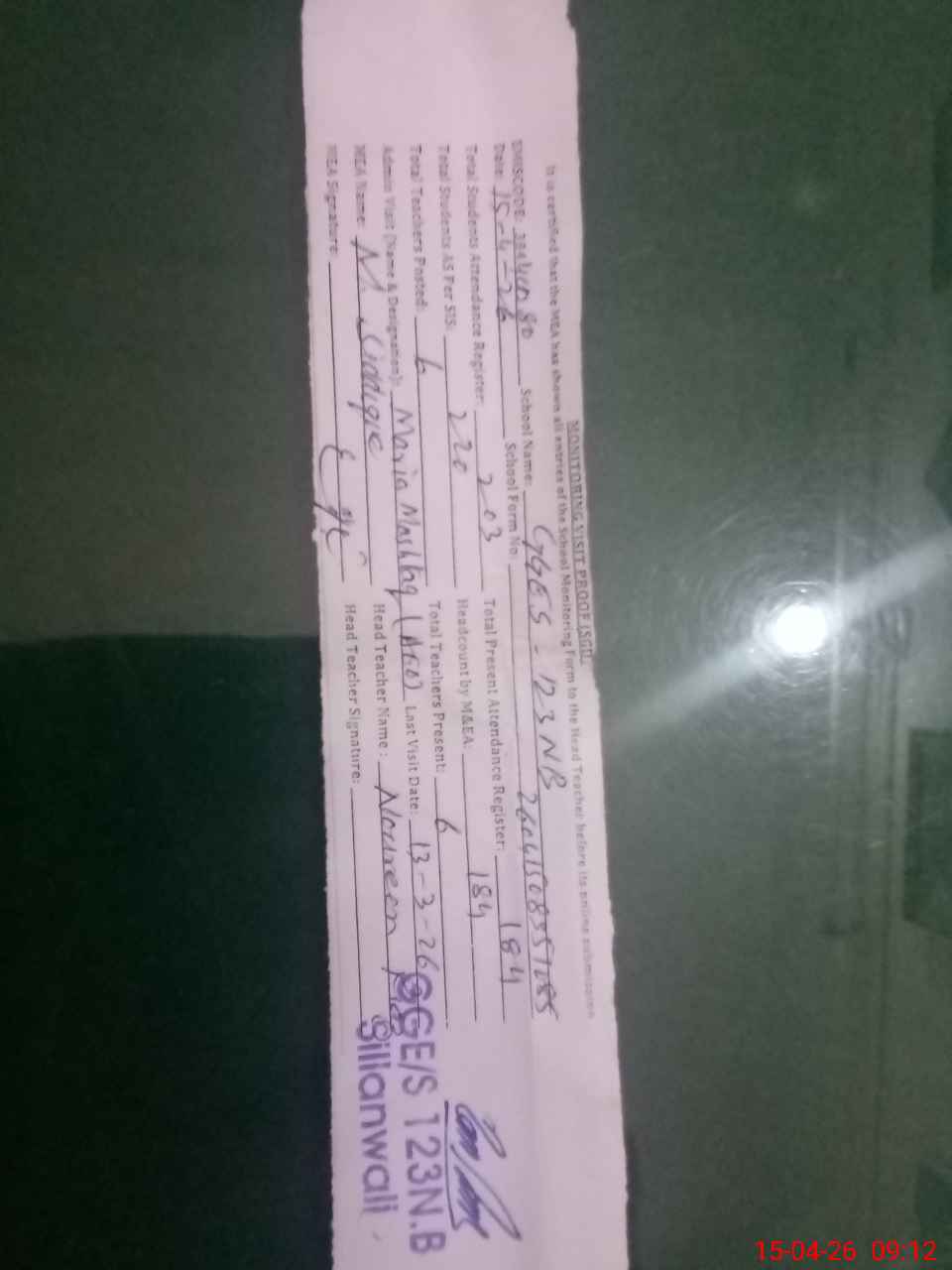 | EMIS Code: 38440080 | Name of School: GGES CHAK NO.123 NB | |||