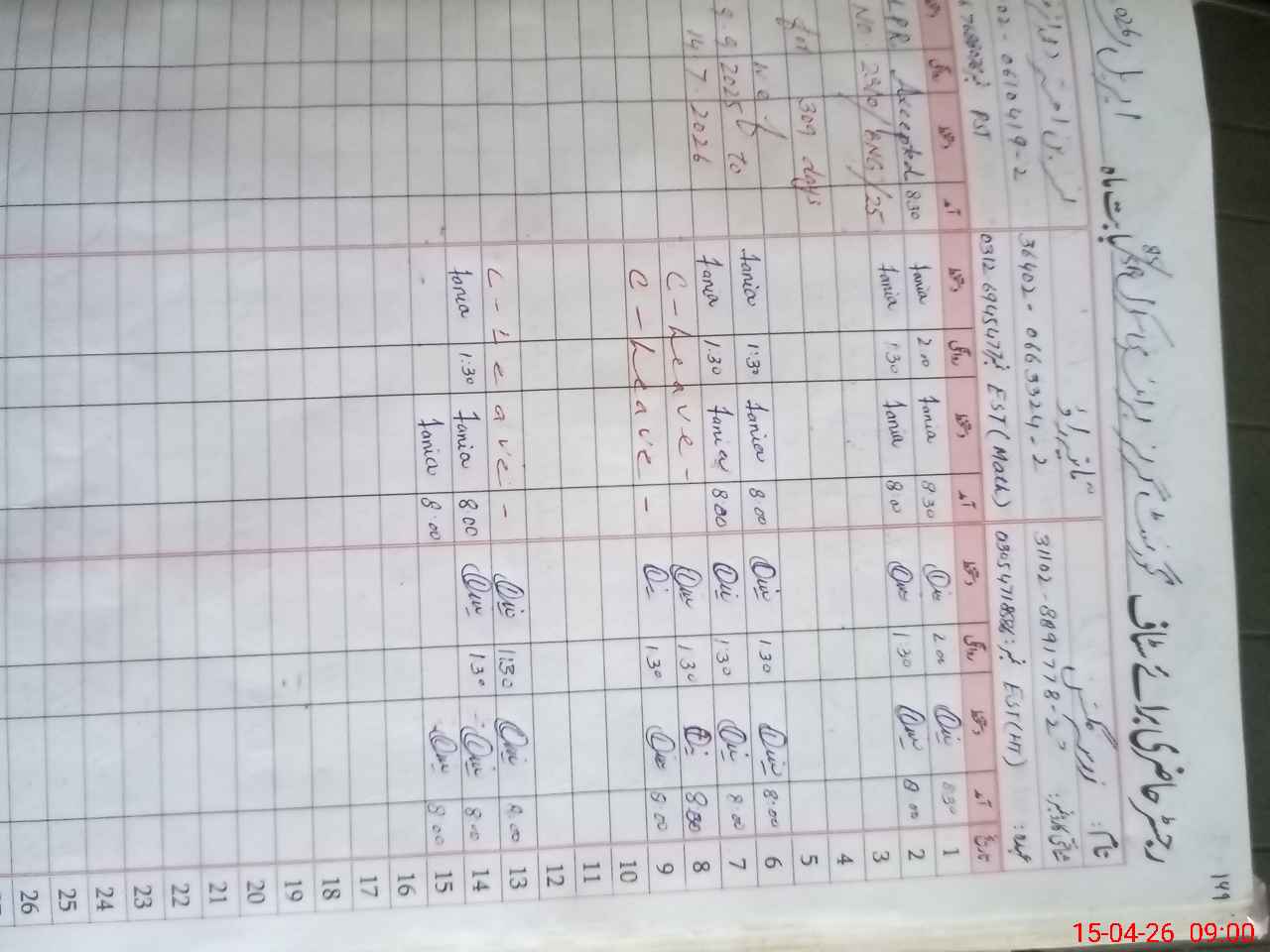 | CNIC | Full Name | Designation | R/C | Absence During Last Calender Month |