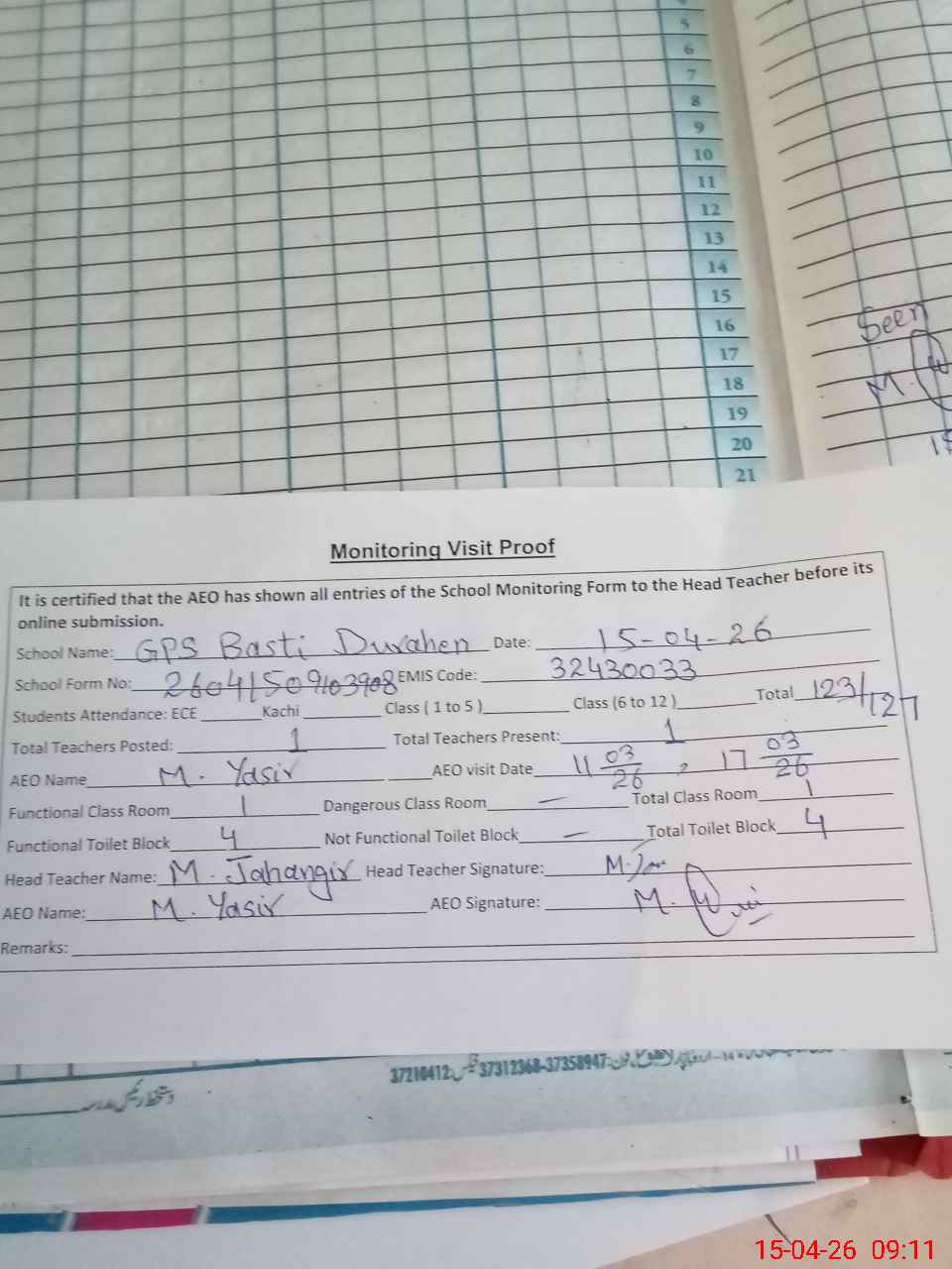 | EMIS Code: 32430033 | Name of School: GPS BASTI DURAHEN | |||