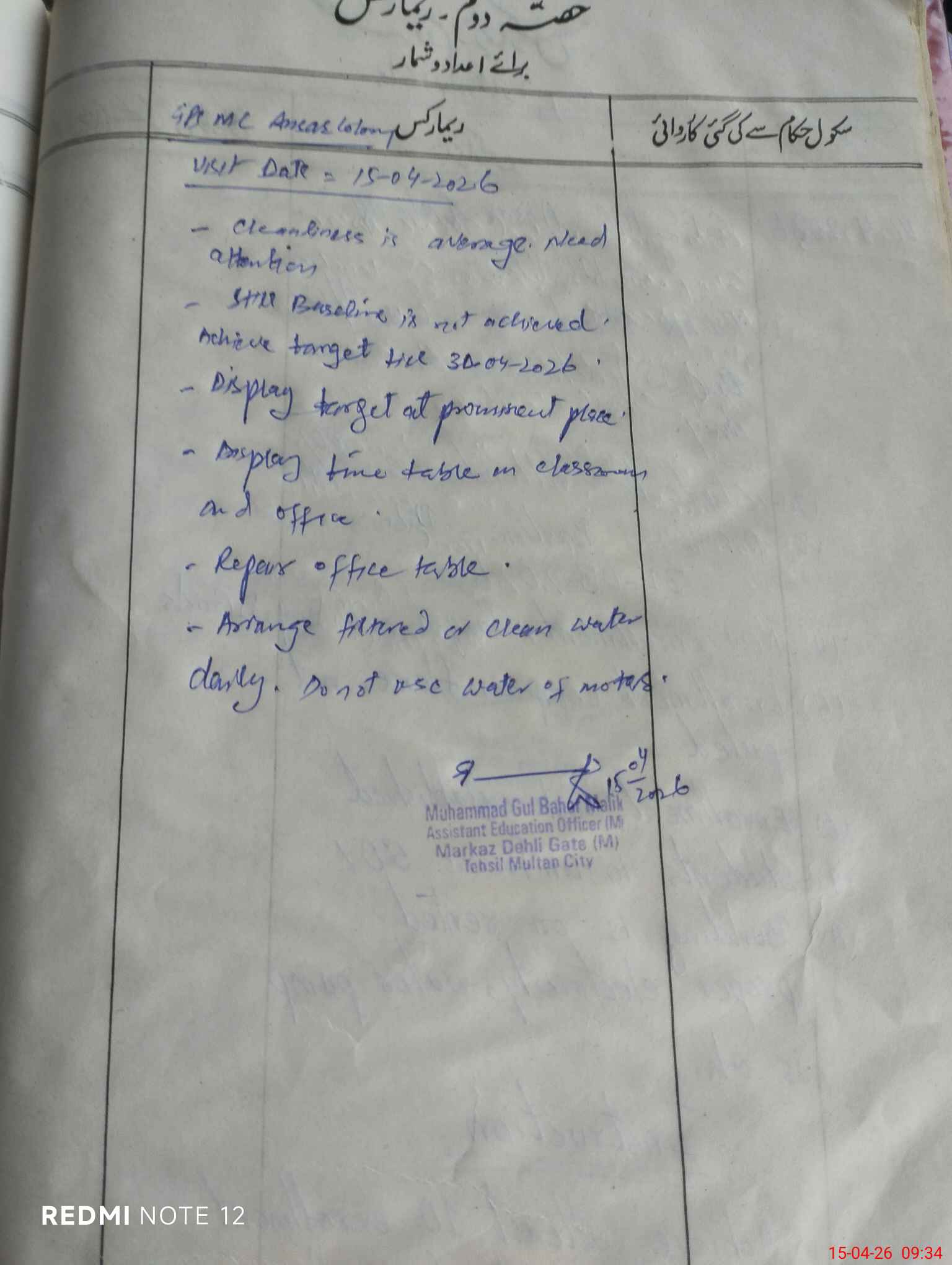 | EMIS Code: 36110173 | Name of School: GPS MC ANSAR COLONY BUDHLA ROAD MULTAN | |||