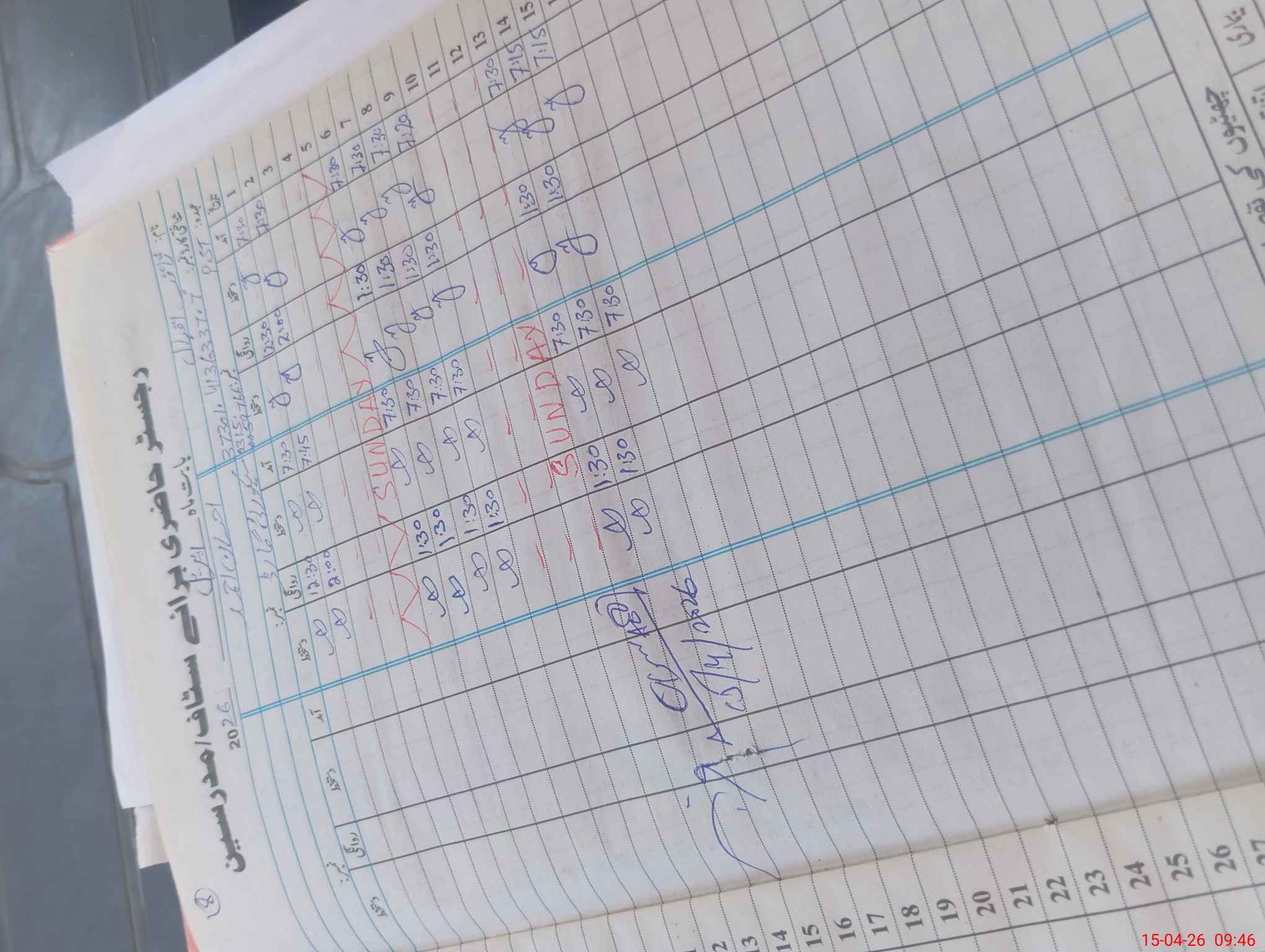 | CNIC | Full Name | Designation | R/C | Absence During Last Calender Month |