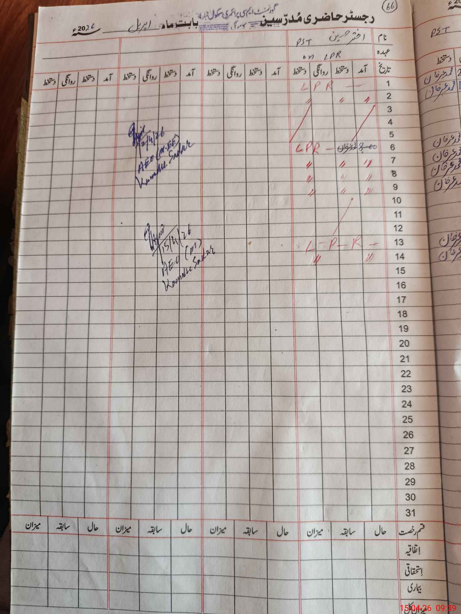 | CNIC | Full Name | Designation | R/C | Absence During Last Calender Month |