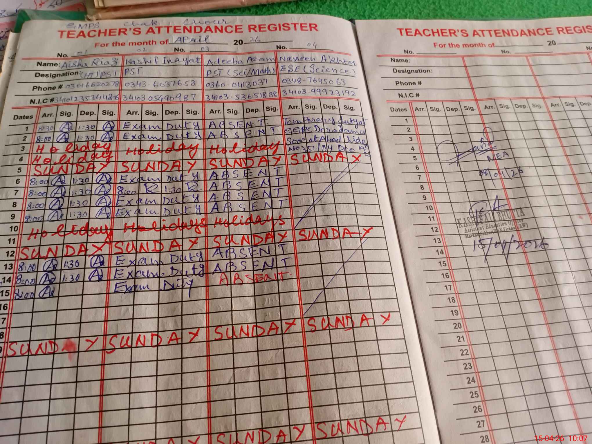 | Name: AY**** RI**** Designation: (School Headmaster's/Headmistress's) PST Phone/Cell Number: 03**** |