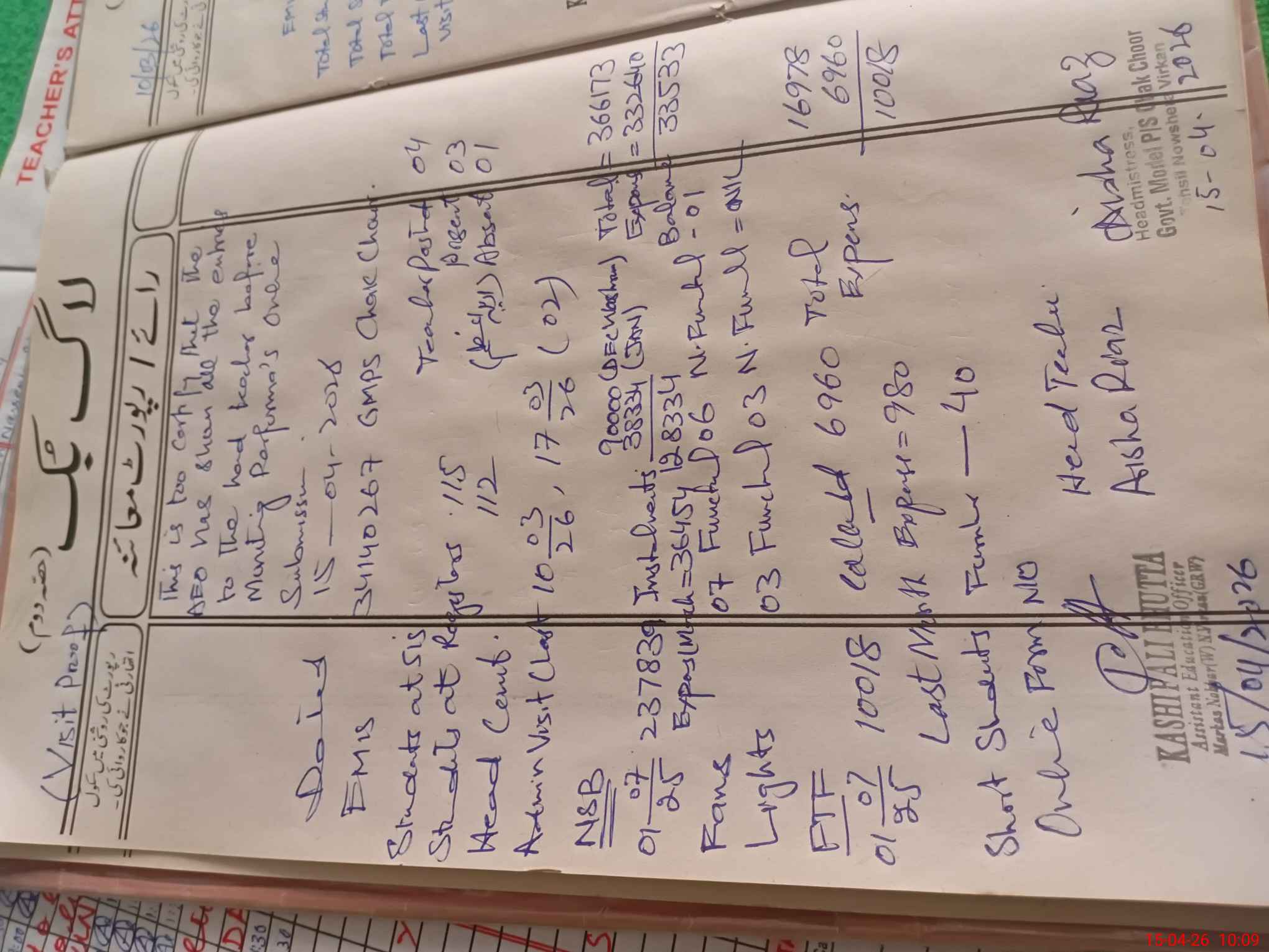 | Attendance Register | Head Teacher | MEA with School | Visit Proof |