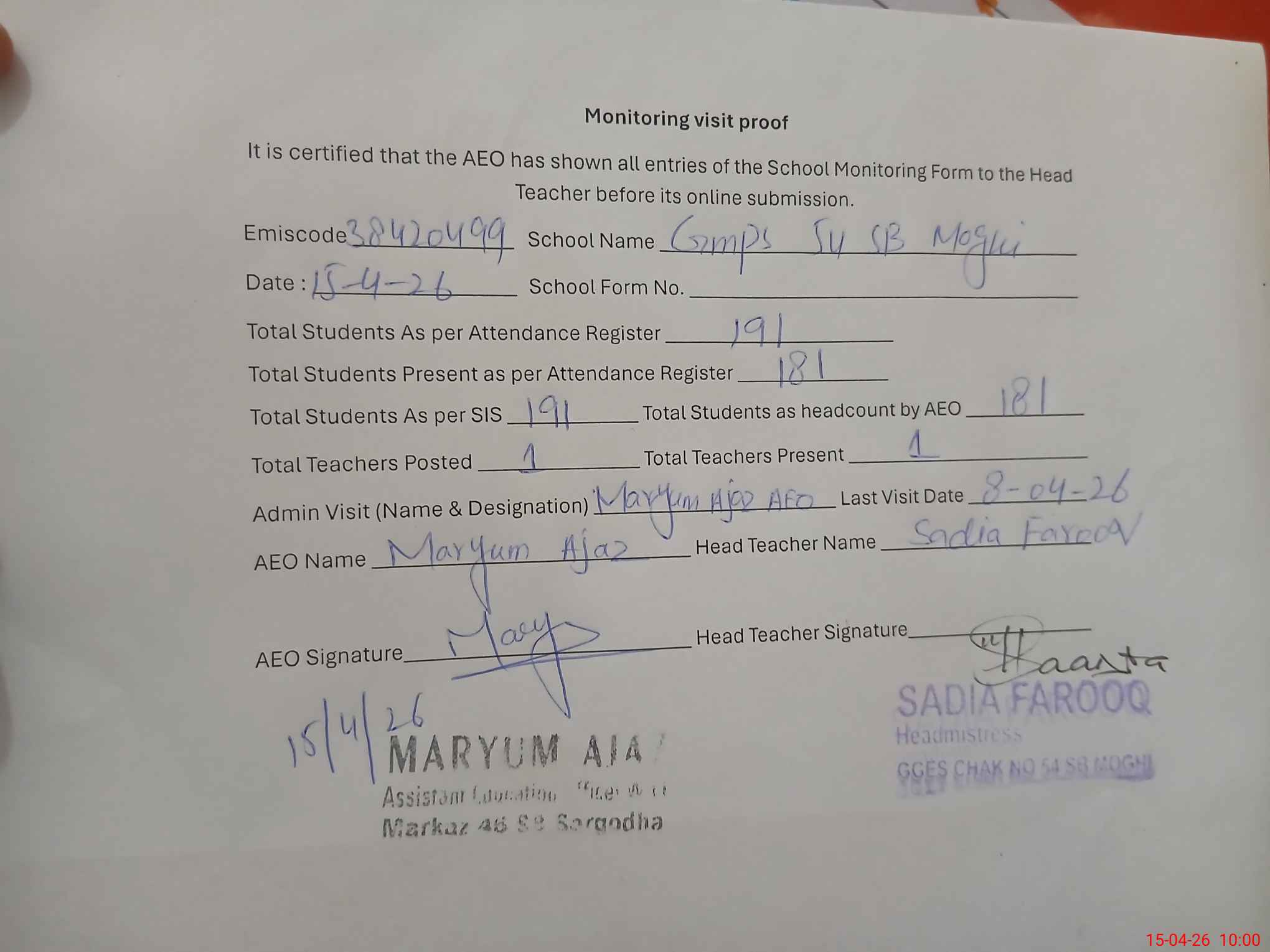 | EMIS Code: 38420499 | Name of School: GMPS CHAK NO.54 SB MOGHI | |||