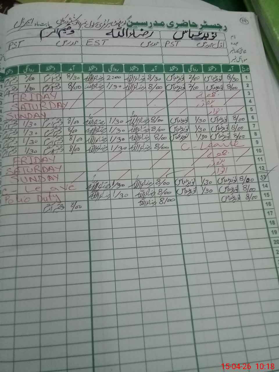 | 33**** | Sa**** Sa**** | PST Arts | Regular | 0 | 0 | 0 | 0 | 0 | 0 | 0 | 0 | 0 | Exam Duty |