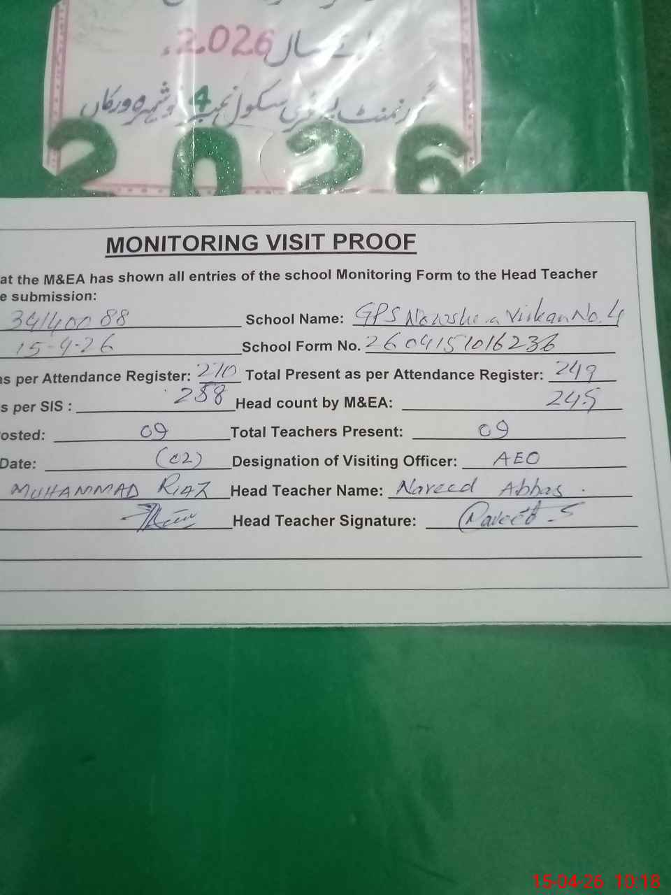 | EMIS Code: 34140088 | Name of School: GPS NOWSHERA VIRKAN NO.4 | |||