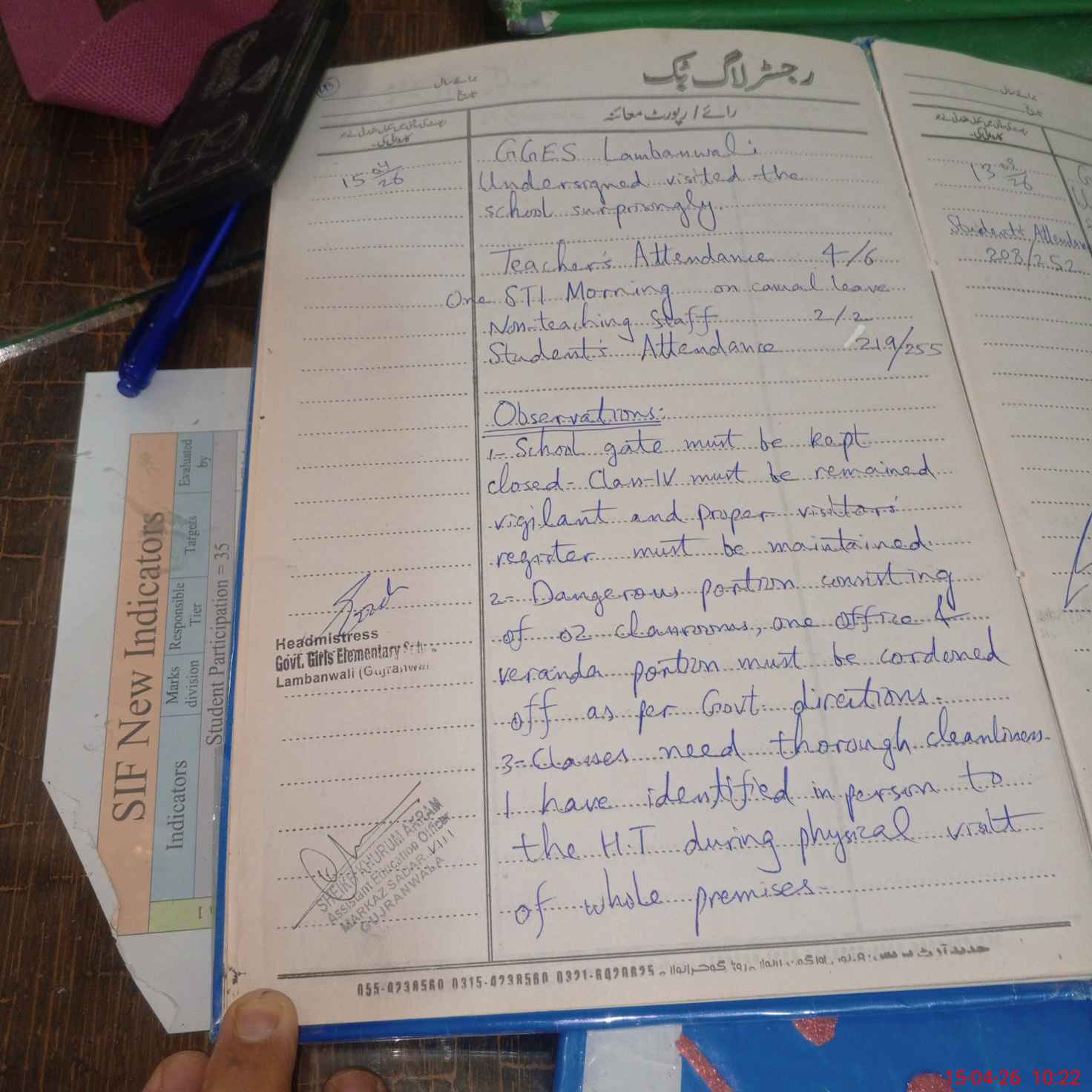 | Attendance Register | Head Teacher | MEA with School | Visit Proof |
