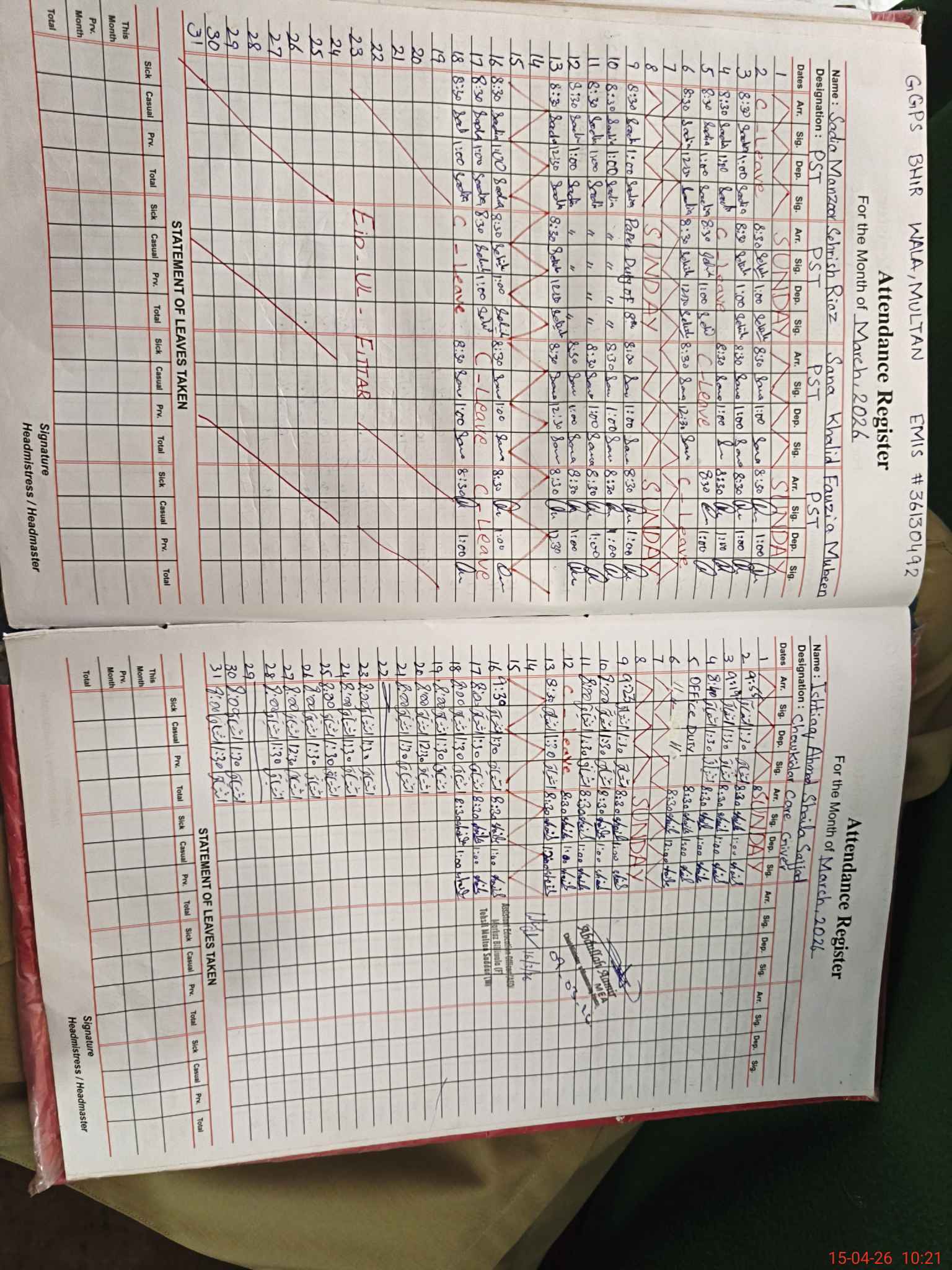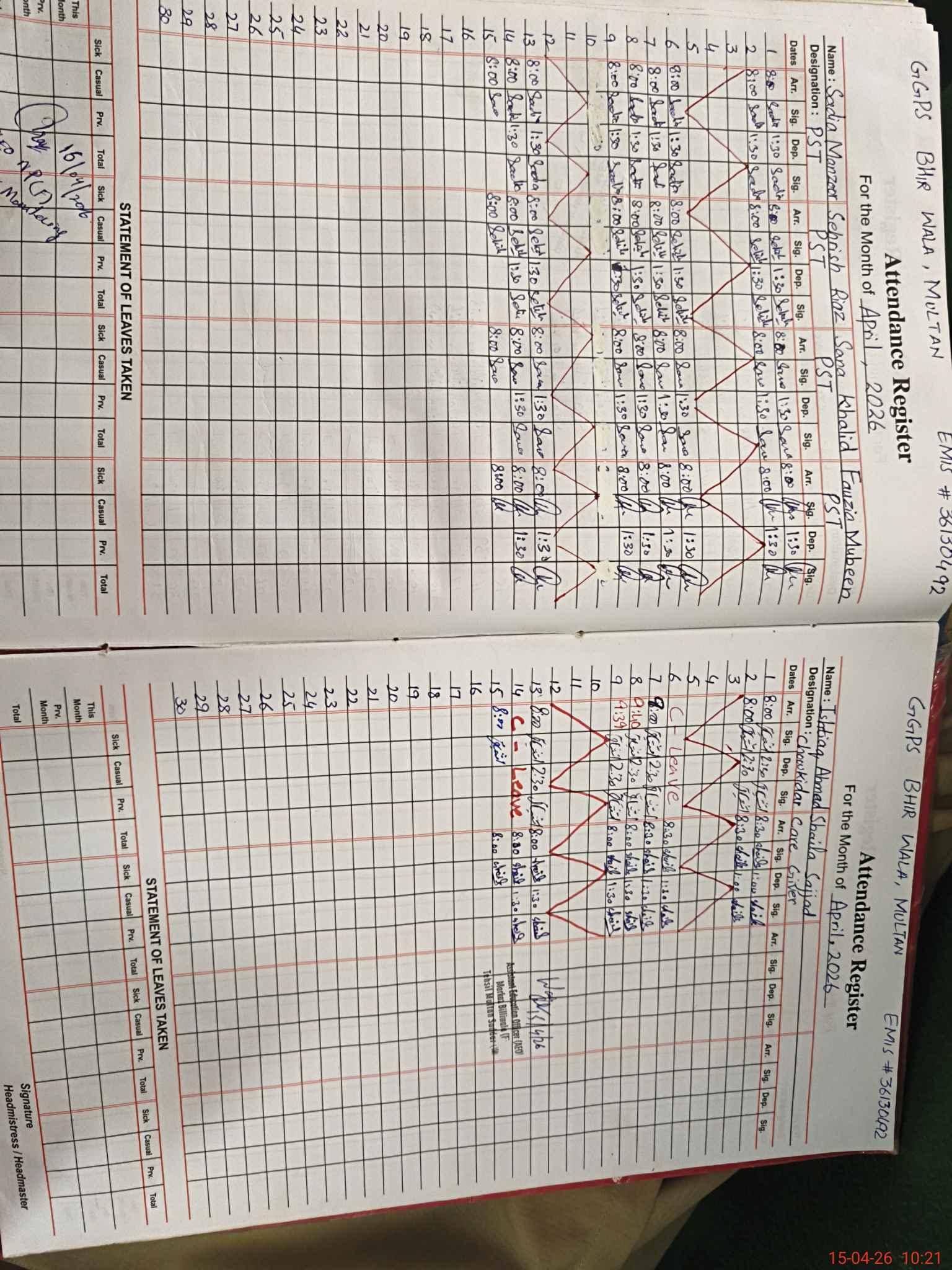 | Name: SA**** MA**** Designation: (School Headmaster's/Headmistress's) PST Phone/Cell Number: 03**** |