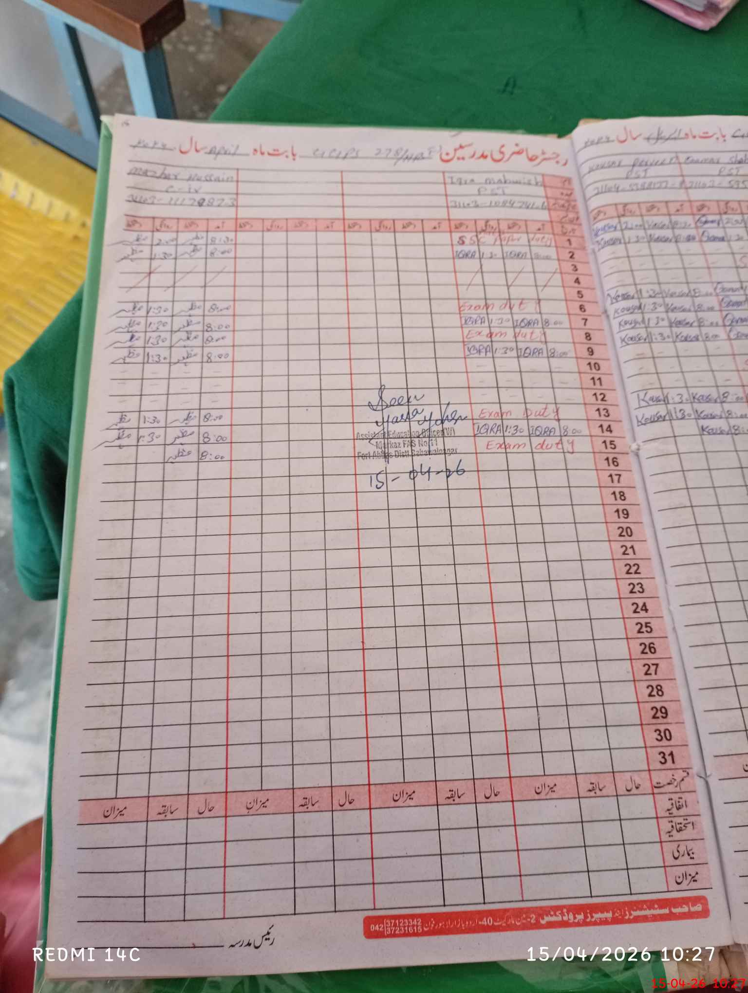 | Name: Fa**** Na**** Designation: (School Headmaster's/Headmistress's) PST Phone/Cell Number: 03**** |