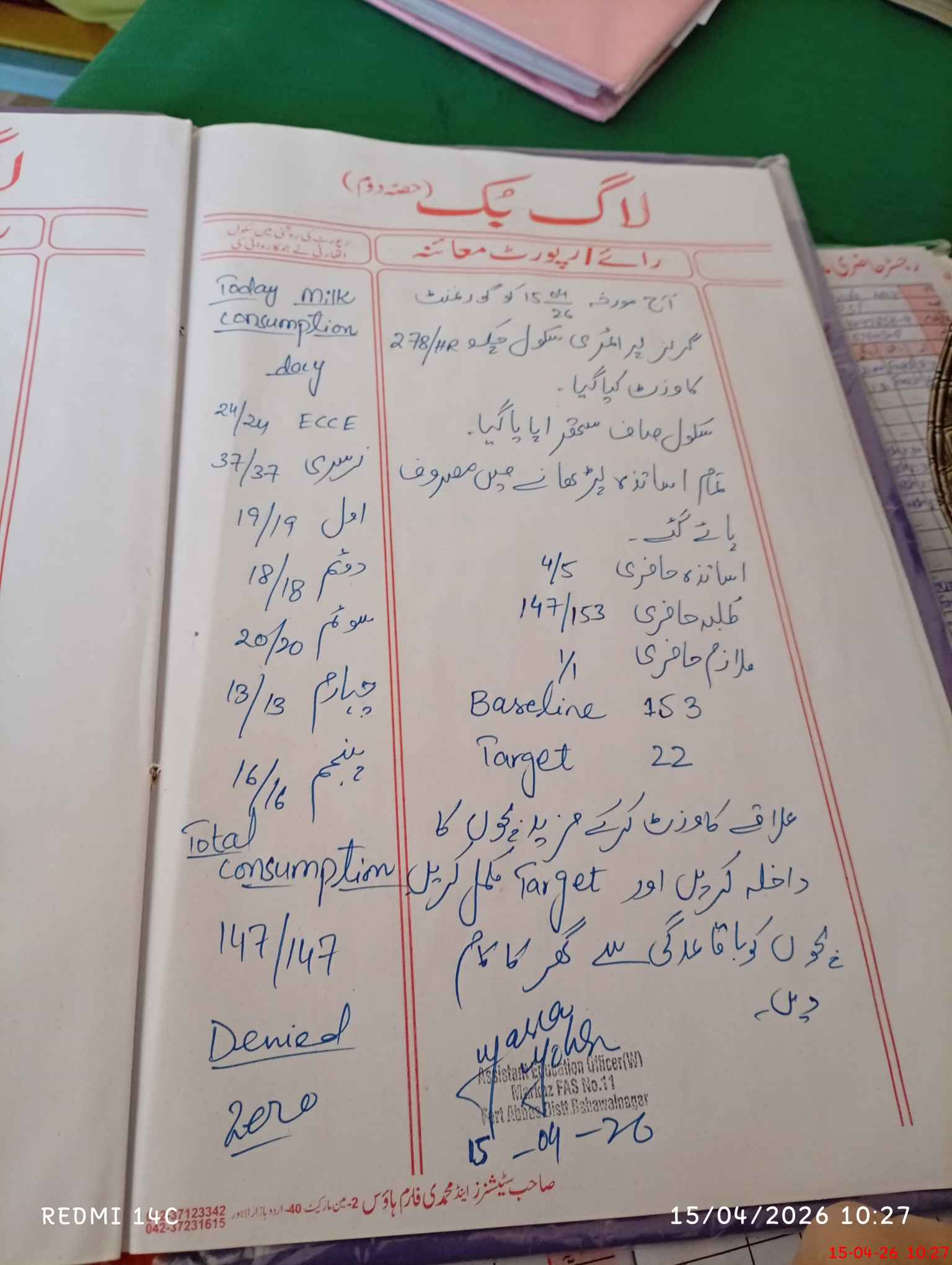 | Attendance Register | Head Teacher | MEA with School | Visit Proof |
