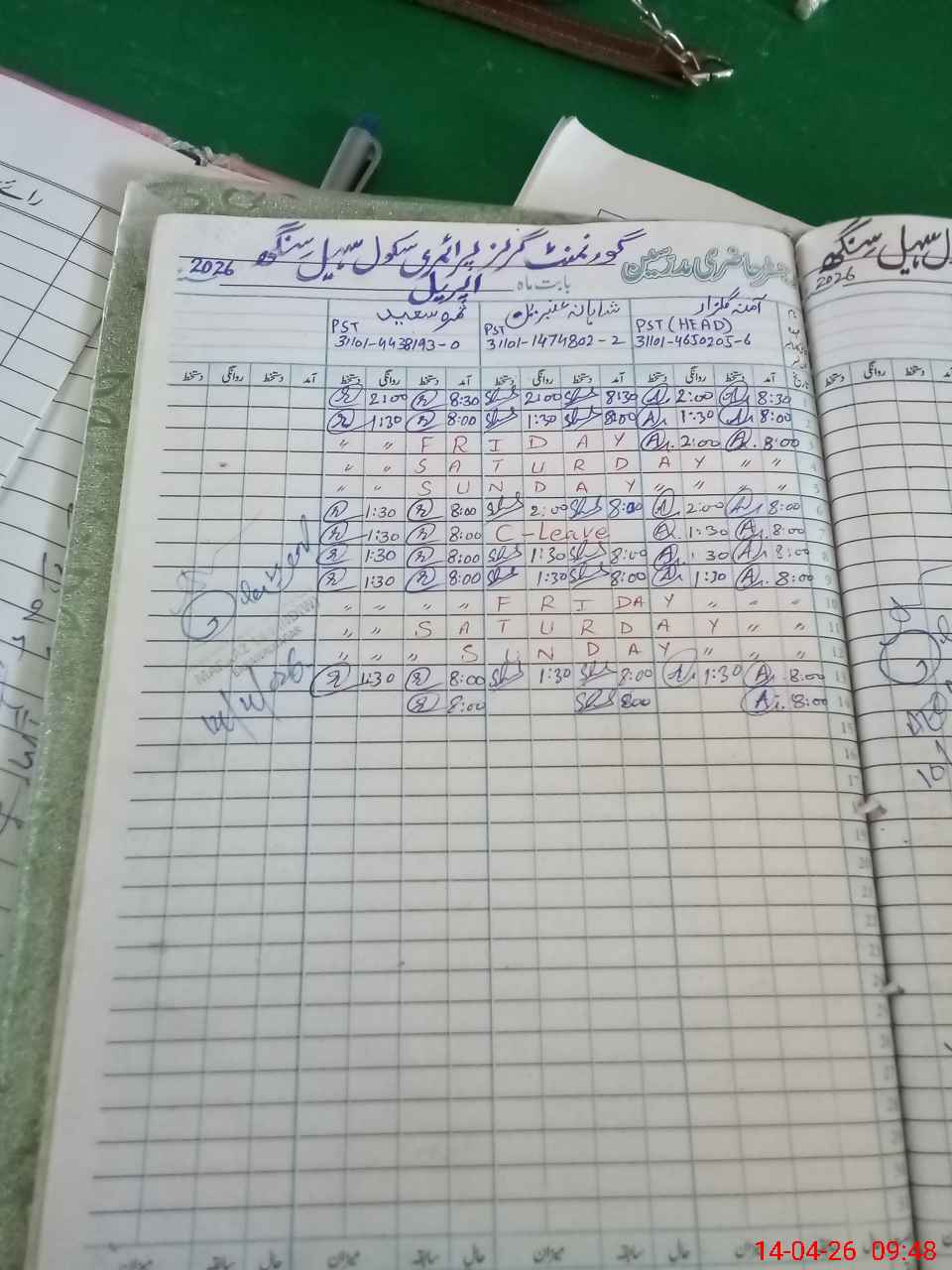 | CNIC | Full Name | Designation | R/C | Absence During Last Calender Month |