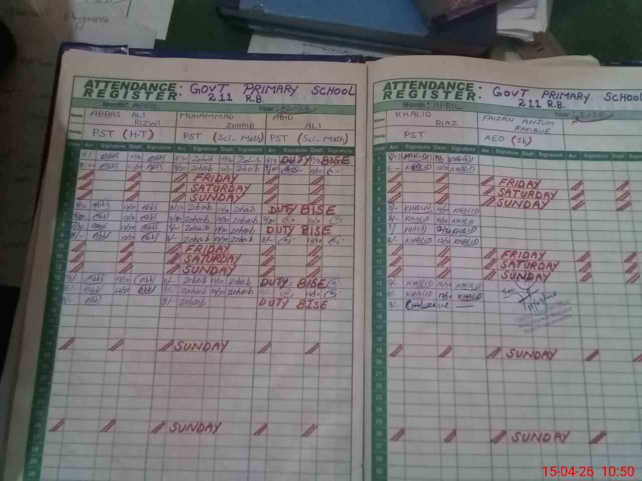 | 33**** | Ab**** Al**** | PST Science/Maths | Regular | 0 | 0 | 0 | 0 | 0 | 0 | 0 | 0 | 0 | Exam Duty |