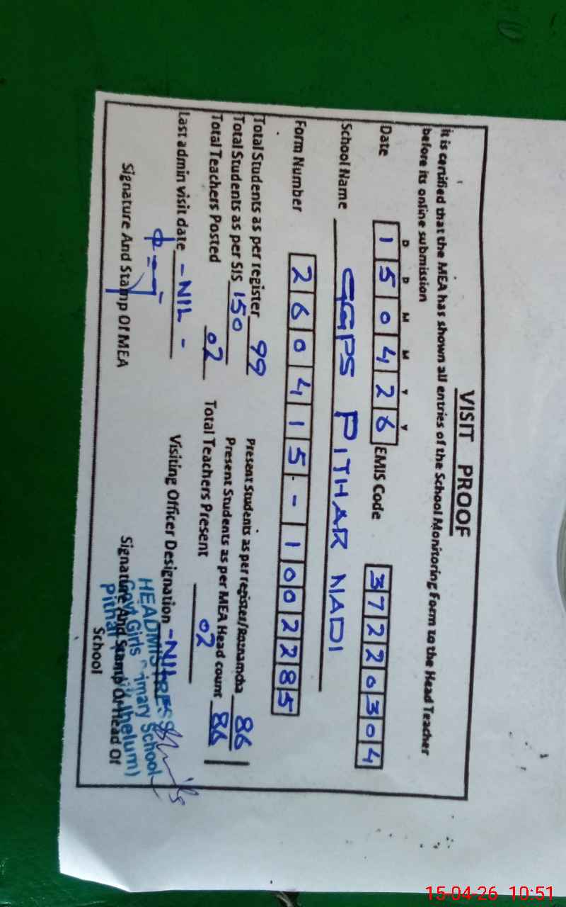 | EMIS Code: 37220304 | Name of School: GGPS PITHER NADI | |||