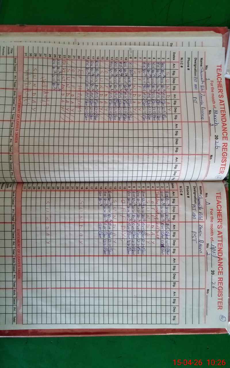 | Attendance Register | Head Teacher | MEA with School | Visit Proof |