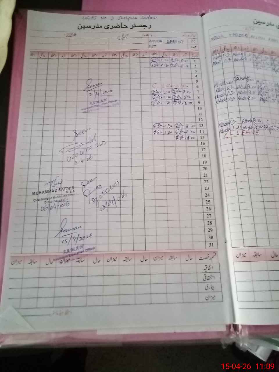 | CNIC | Full Name | Designation | R/C | Absence During Last Calender Month |